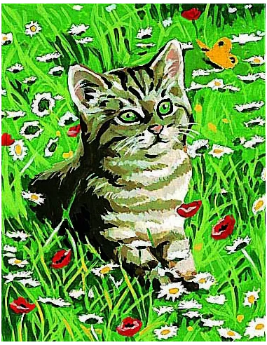 Kit canevas : 20x25 cm, blanc : Chaton 20x25