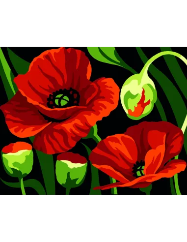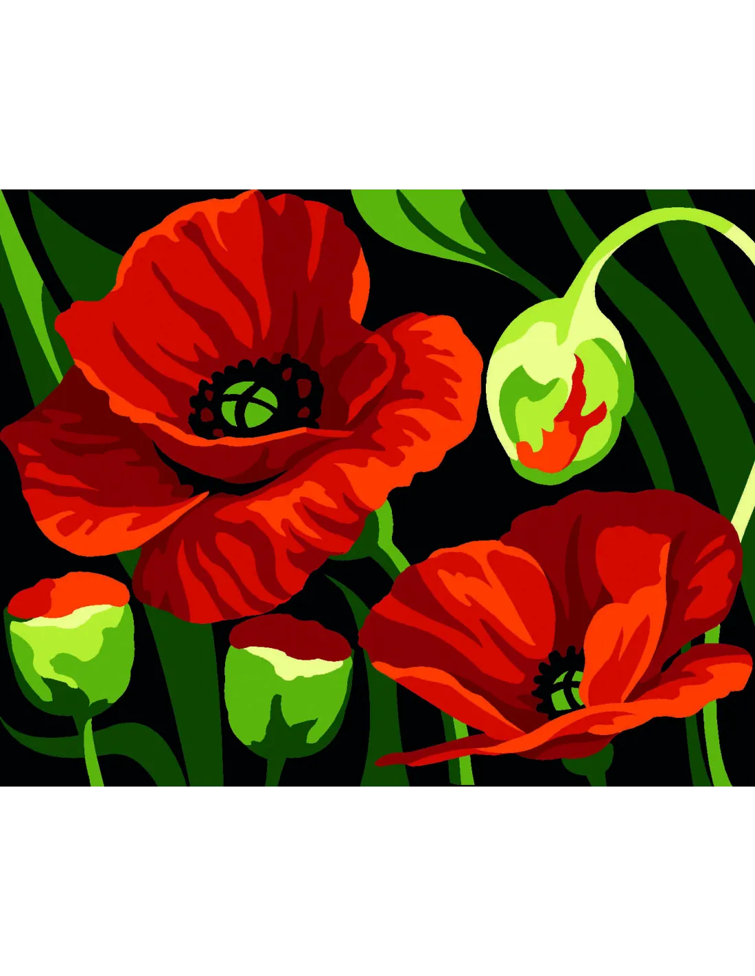 Kit canevas : 20x25 cm, blanc : Coquelicots
