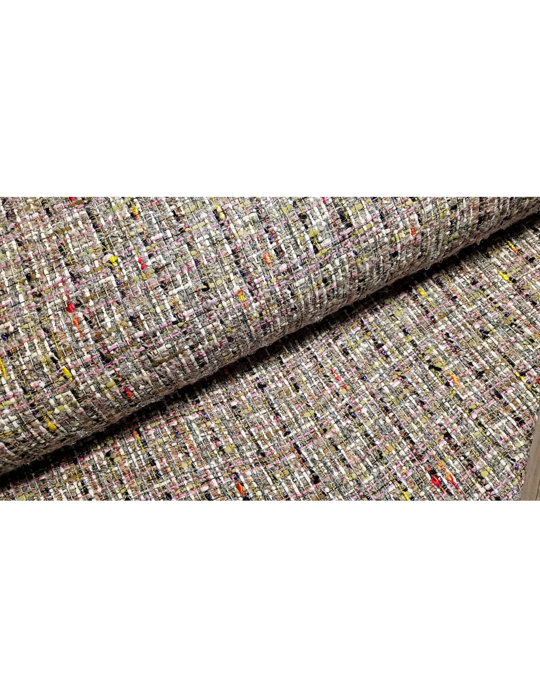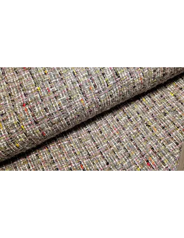 Magnifique tissu au style Chanel, d'une grande qualité. Les fils de différentes couleurs et grosseurs, les fils luerx lui donnent un rendu incroyable ! Il sera parfait pour fabriquer une veste, une jupe ou tout ce qui peut vous faire plaisir !