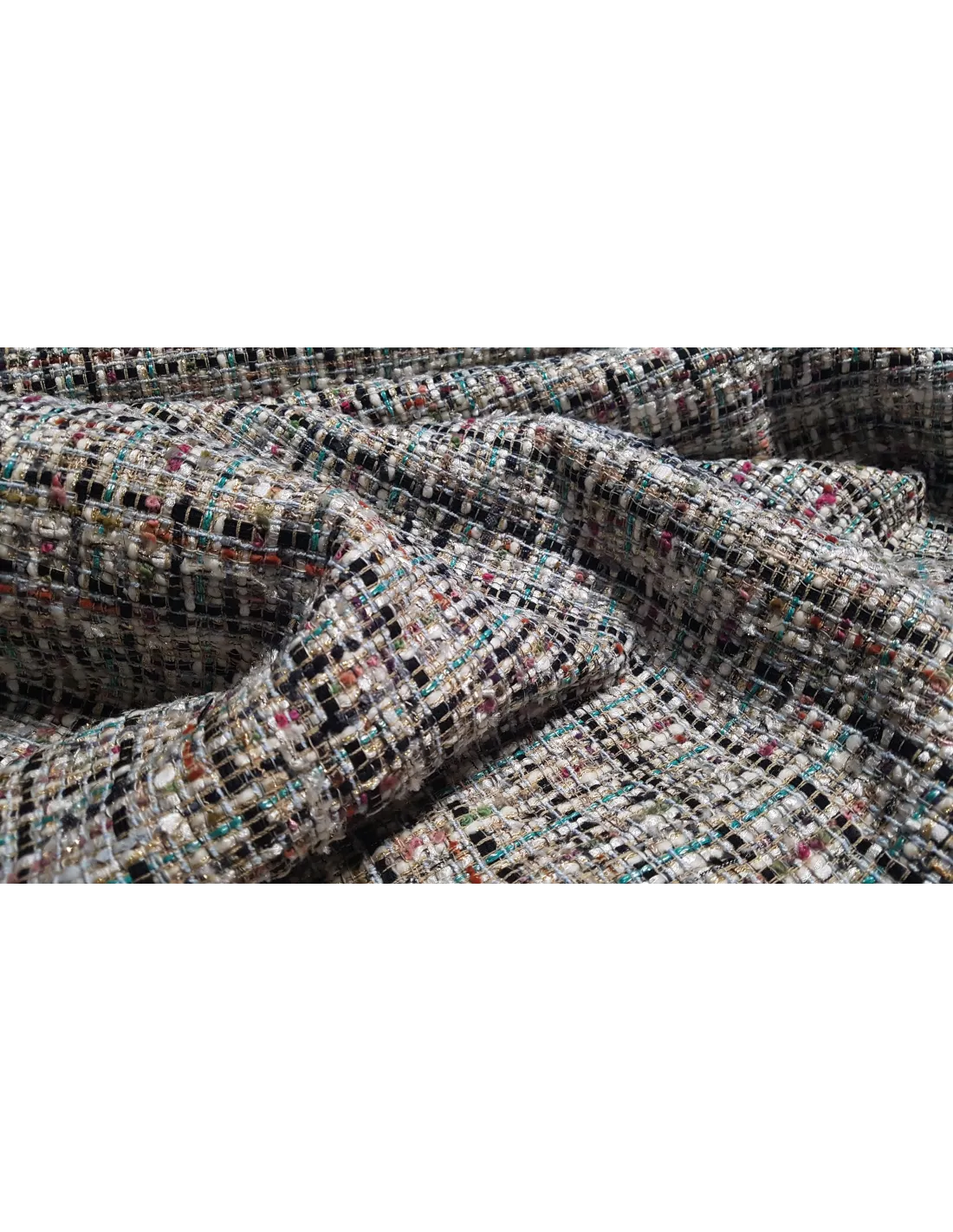 Magnifique tissu au style Chanel, d'une grande qualité. Les fils de différentes couleurs et grosseurs, les fils luerx lui donnent un rendu incroyable ! Il sera parfait pour fabriquer une veste, une jupe ou tout ce qui peut vous faire plaisir !