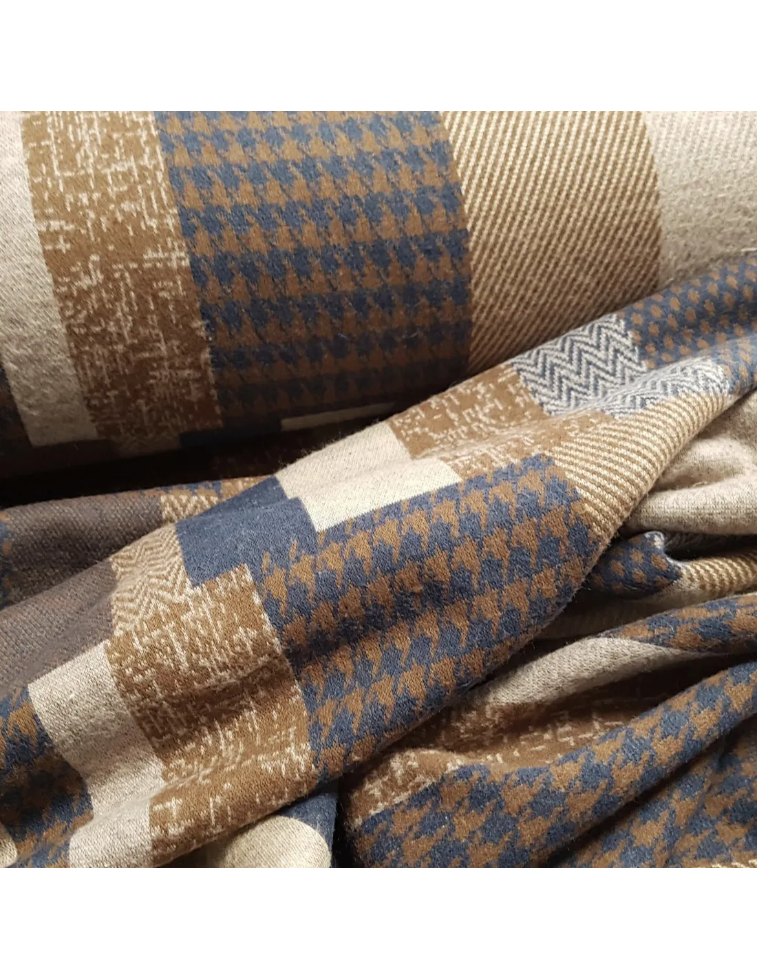 Lainage carreaux beige et bleu. Parfait pour la confection d'un manteau, d'une veste ou tout simplement d'une couverture. Doux au toucher.