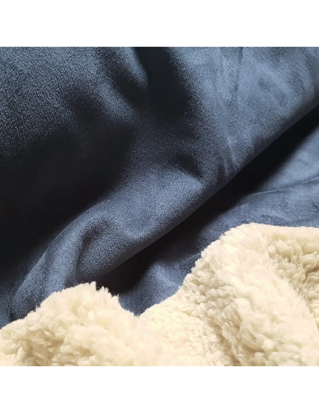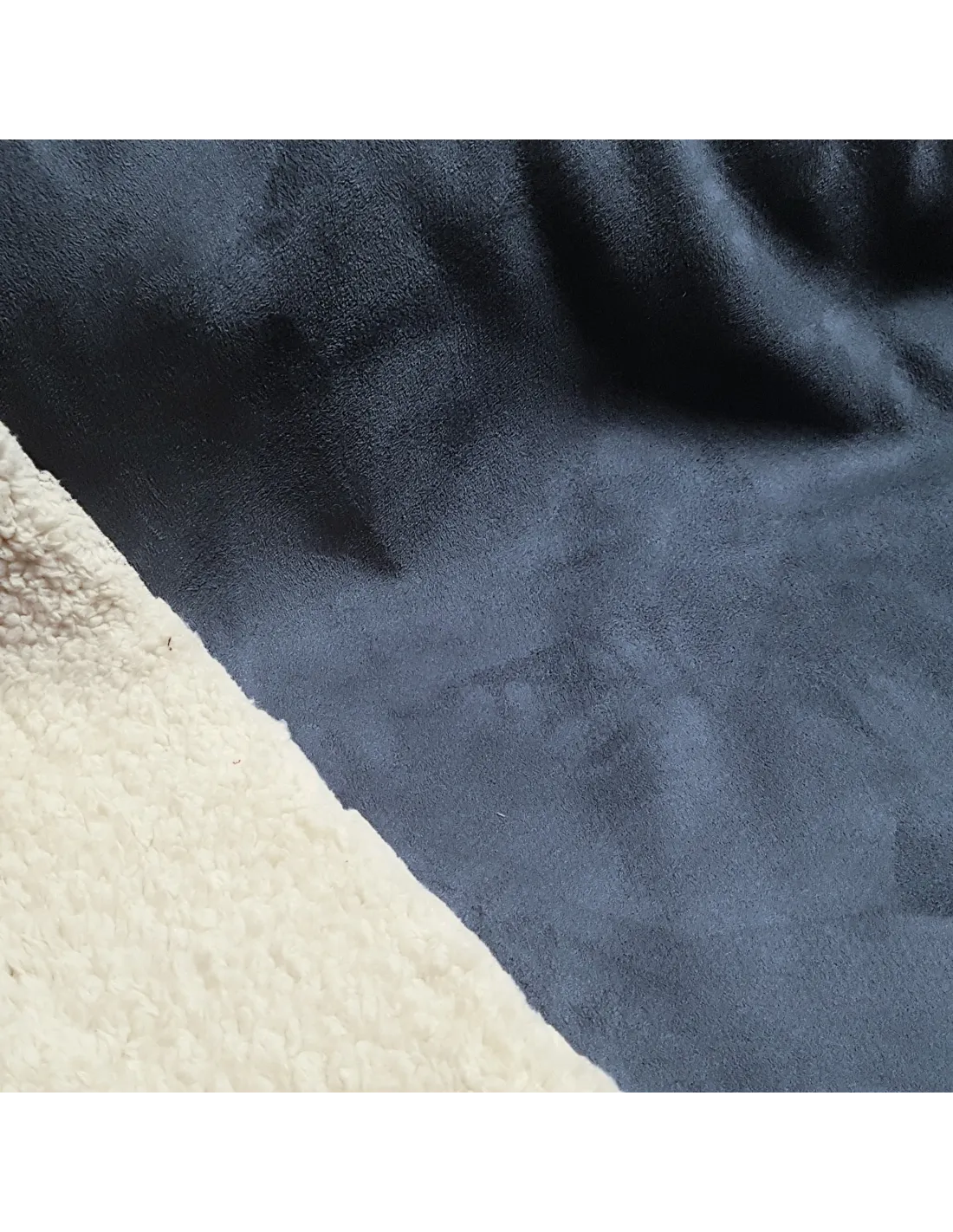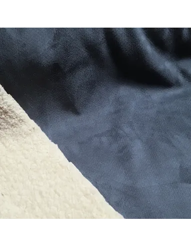 Tissu lainage mouton retourné. Endroit suédine coloré et envers mouton écru. Conviendra parfaitement pour l'habillement, pour un blouson type aviateur par exemple.