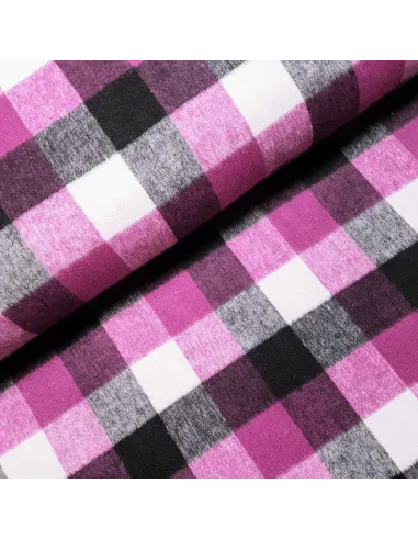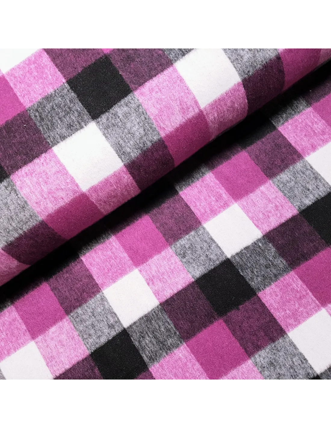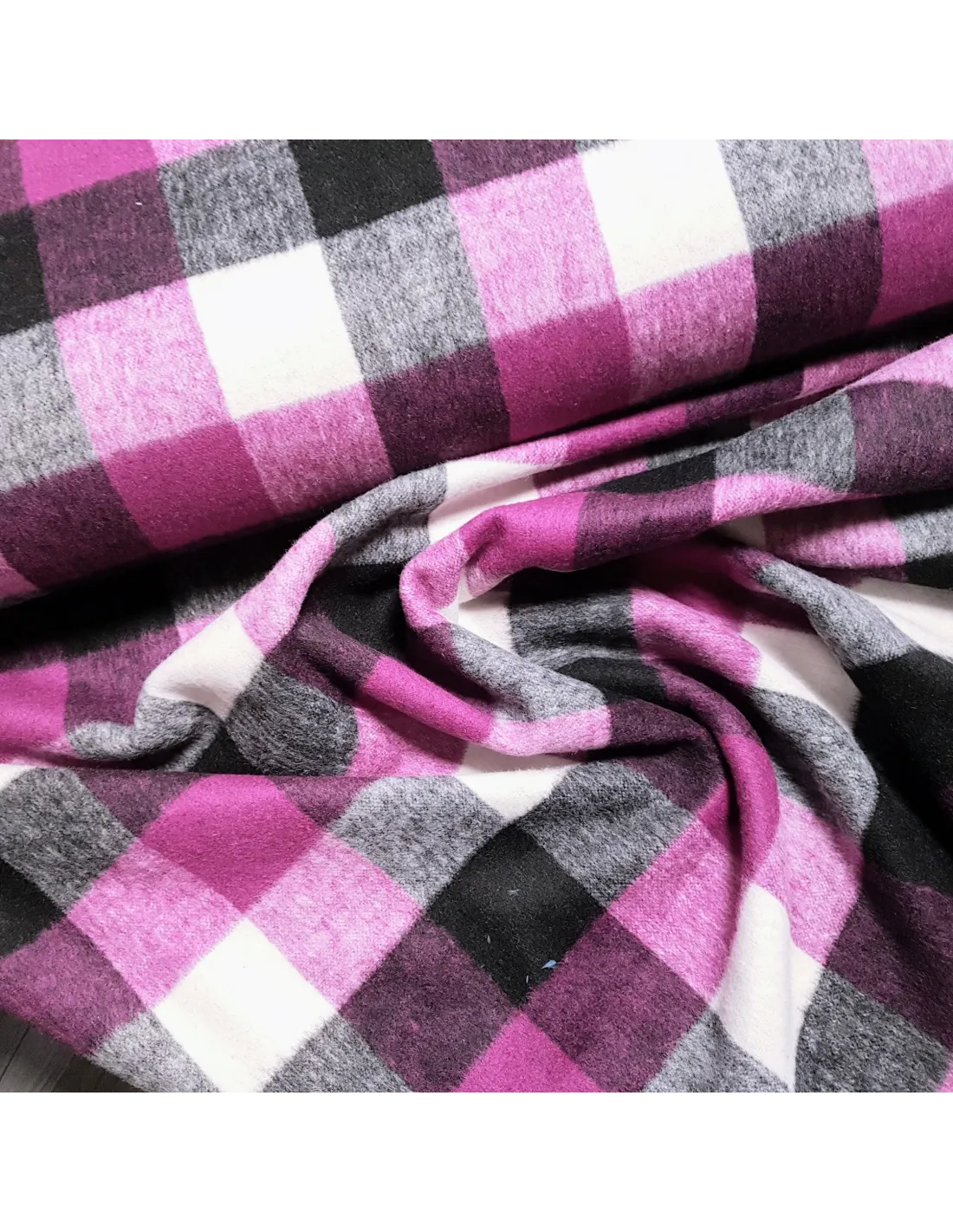 Lainage carreaux roses, gris et noirs. Parfait pour la confection d'un manteau, d'une veste ou tout simplement d'une couverture. Doux au toucher. Envers carreaux.