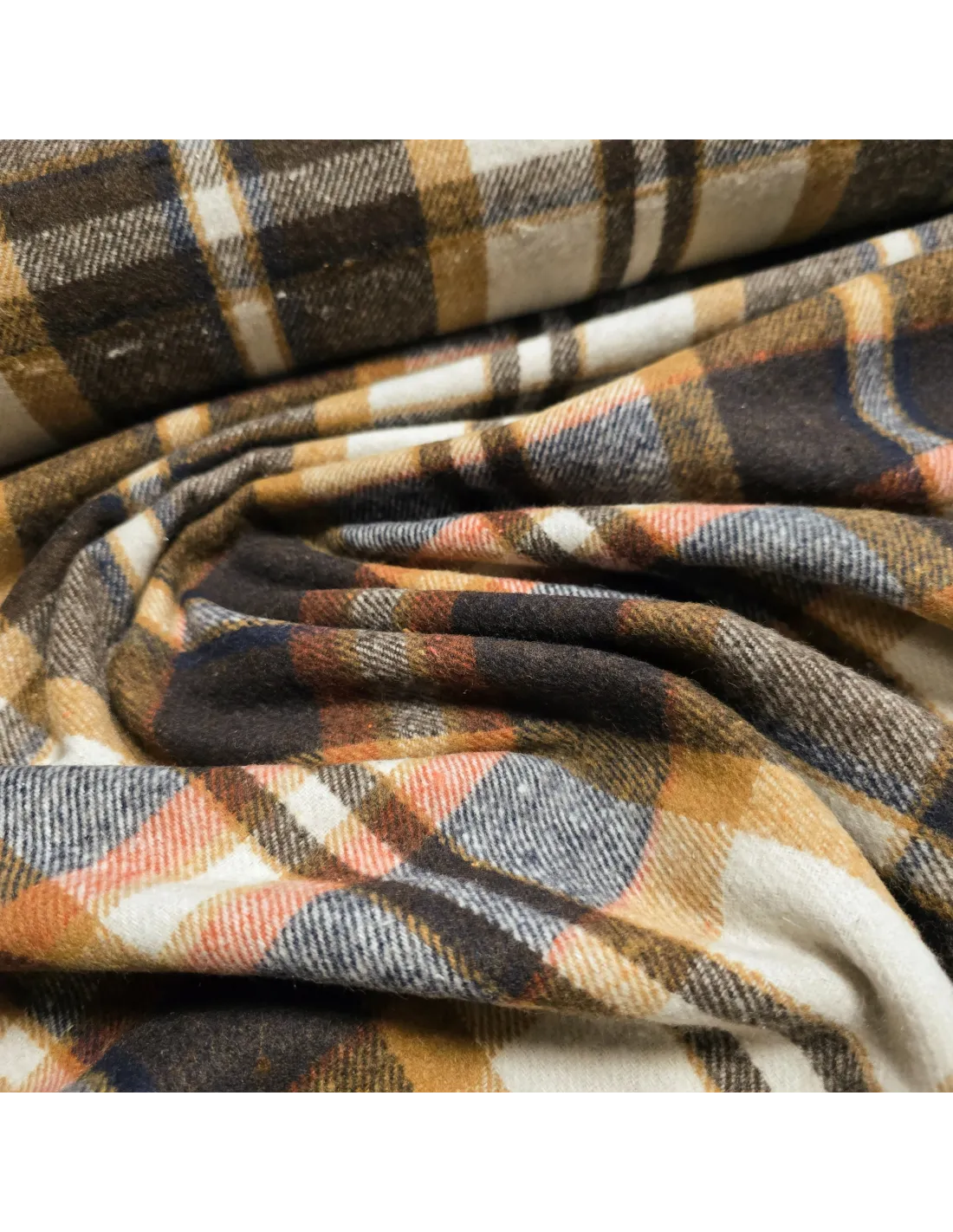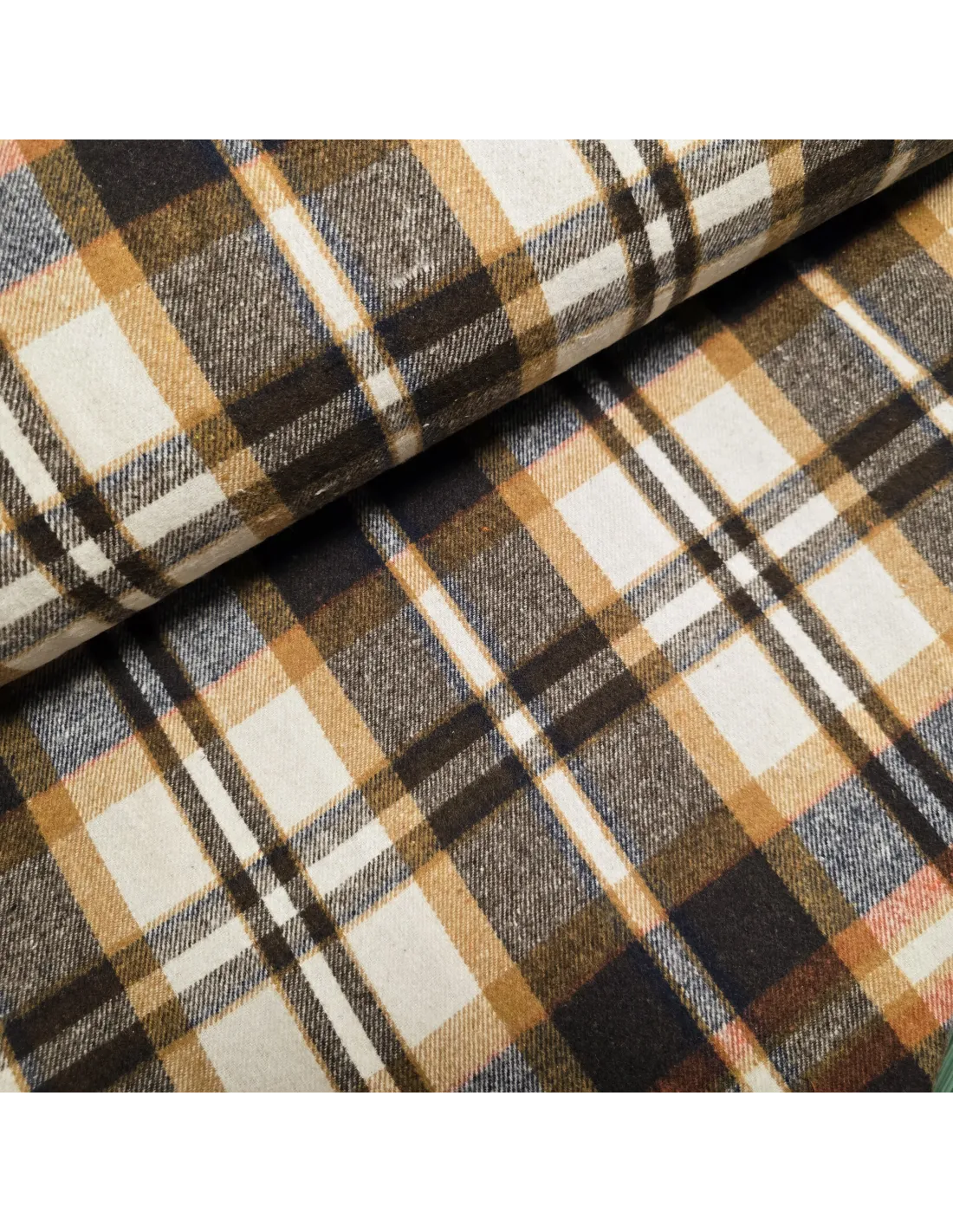 Lainage carreaux beiges marron et bleus. Parfait pour la confection d'un manteau, d'une veste ou tout simplement d'une couverture. Doux au toucher. Envers carreaux.