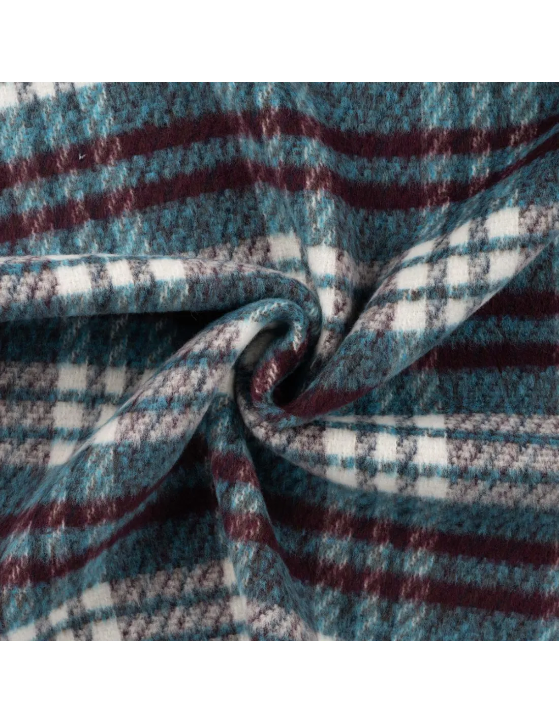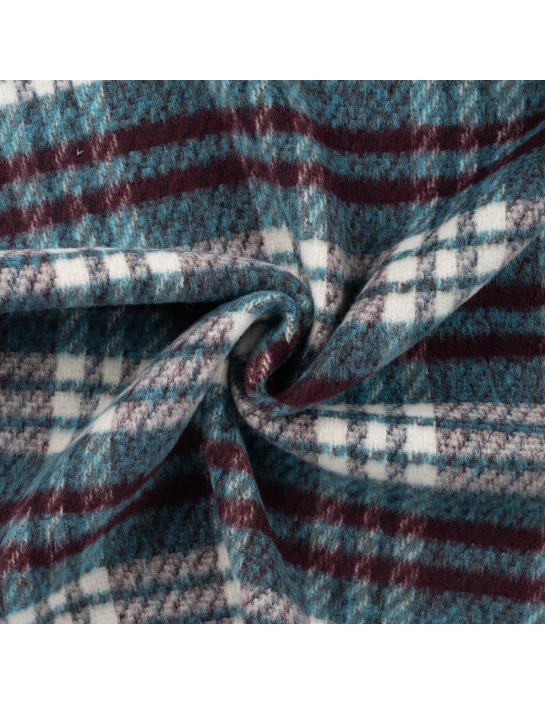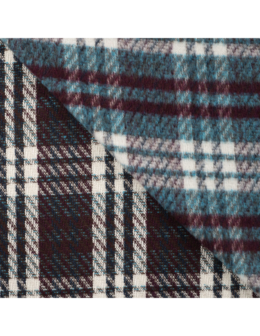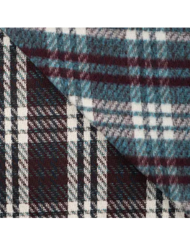 Lainage carreaux pétrole et bordeaux. Parfait pour la confection d'un manteau, d'une veste ou tout simplement d'une couverture. Doux au toucher. Envers carreaux.