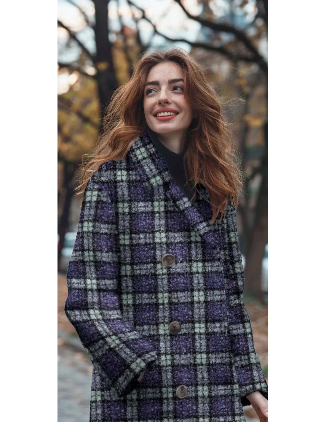 Le plus : La combinaison de la texture bouclette et du motif à carreaux en fait un tissu de haute couture, idéal pour des manteaux remarquables.