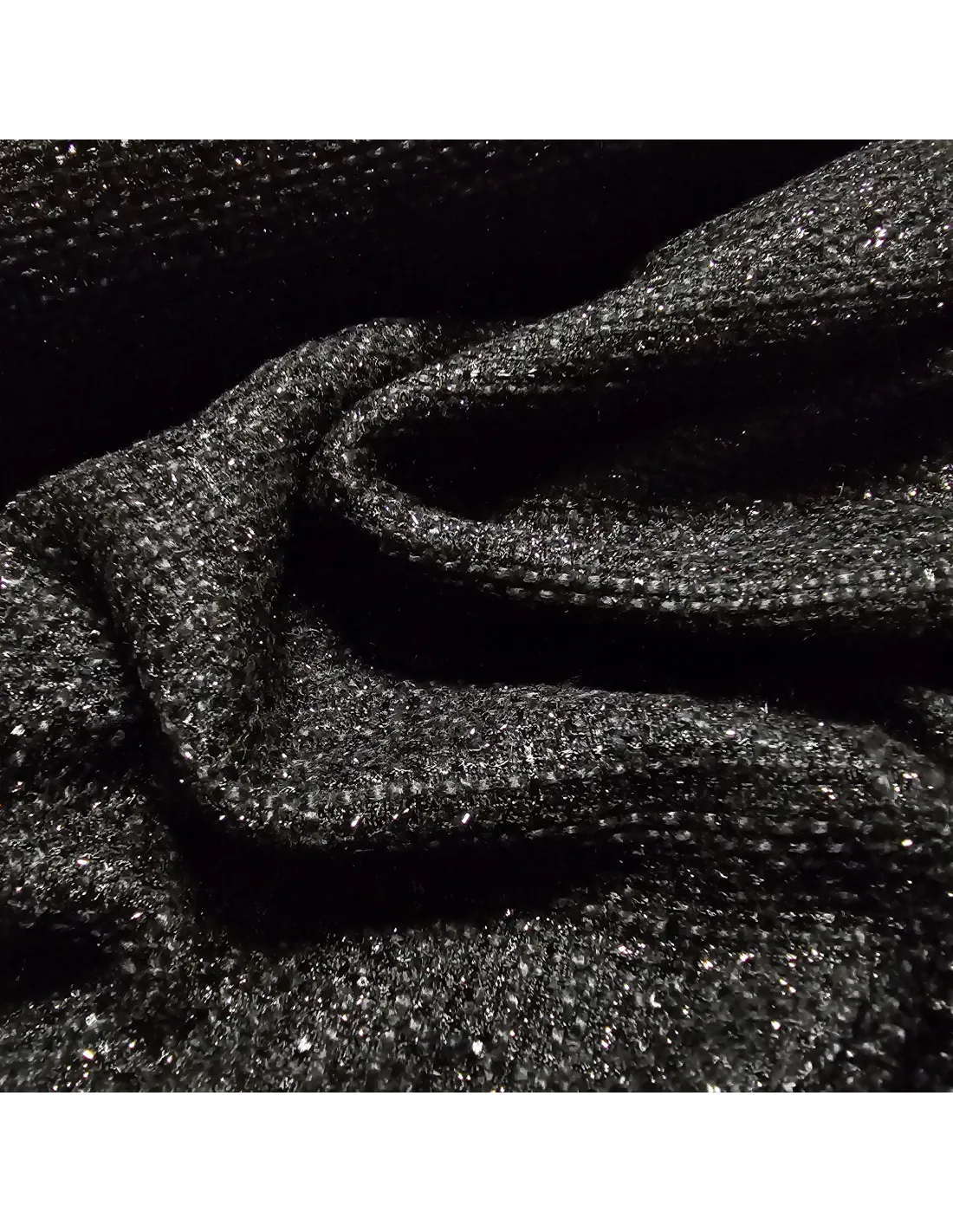Aspect Sophistiqué : La texture est riche, souvent avec un tissage visible (tweed, bouclé, ou armure complexe) qui lui donne son aspect "façon Chanel". Le Noir Profond lui confère une versatilité et une élégance absolues.