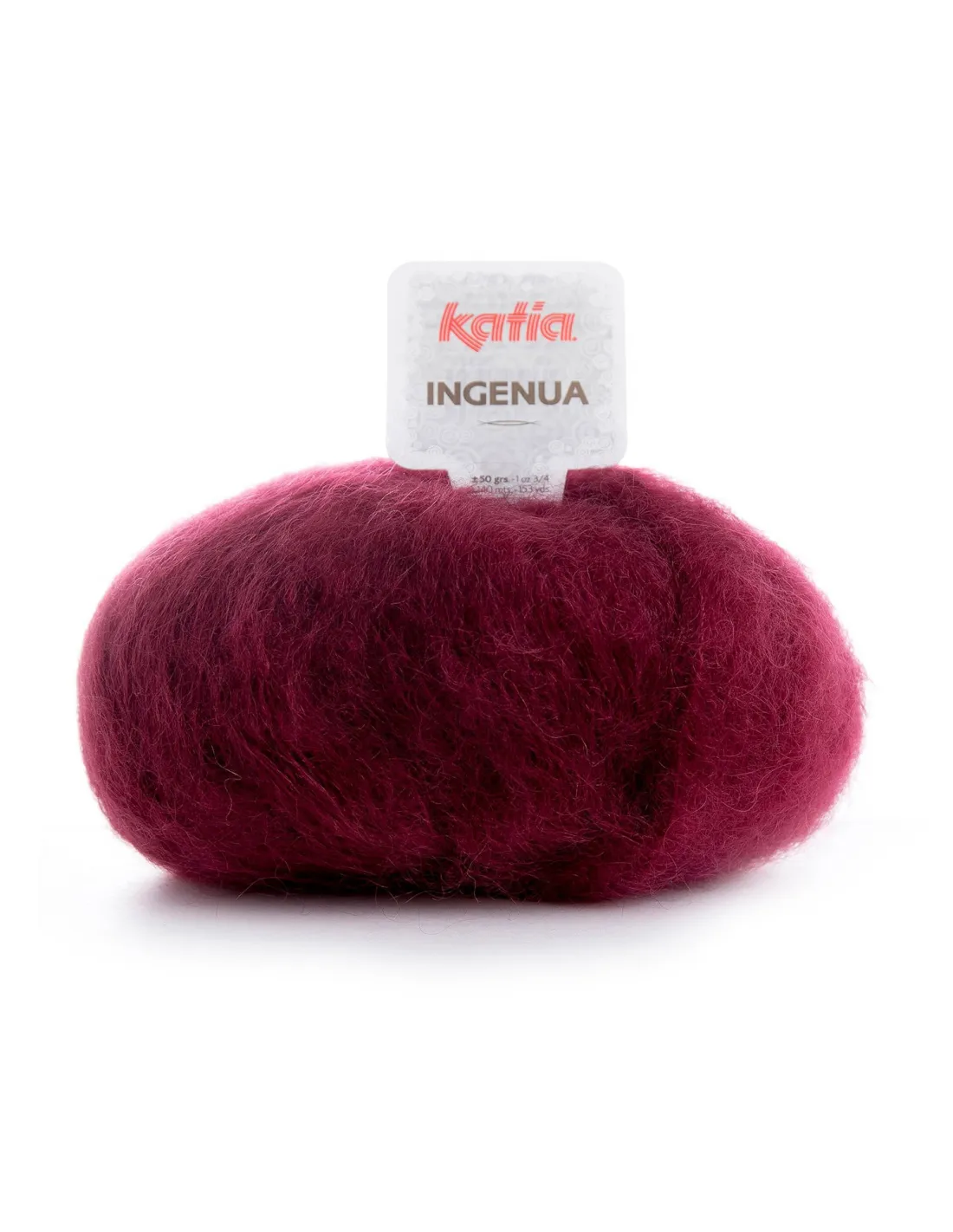 Ingenua est un fil de mohair très léger et au poil long, disponible en couleurs vives et pastel. Laine aérienne pour tricoter des vestes fines et chaudes pour l'hiver et des pulls à rayures pour femme. Ingenua est une laine fabuleuse pour tricoter de doux ponchos au style actuel.