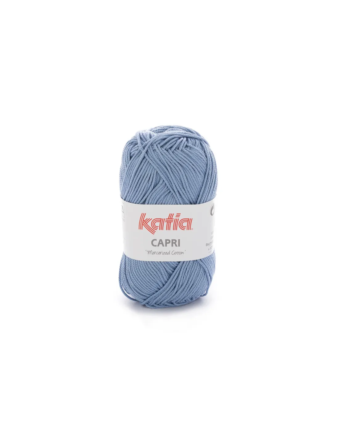 Coton léger, brillant et disponible dans une large gamme de couleurs. Capri est un fil agréable à tricoter pour faire des robes, des pulls d'été et des tops pour petite fille. C'est un coton mercérisé ideal pour crocheter des amigurumis. Pelote de 50 grammes et 125 mètres.
