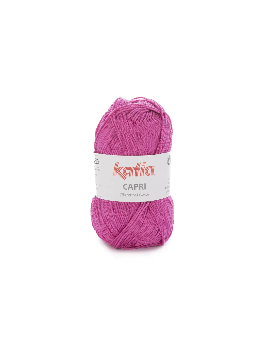Coton léger, brillant et disponible dans une large gamme de couleurs. Capri est un fil agréable à tricoter pour faire des robes, des pulls d'été et des tops pour petite fille. C'est un coton mercérisé ideal pour crocheter des amigurumis. Pelote de 50 grammes et 125 mètres.