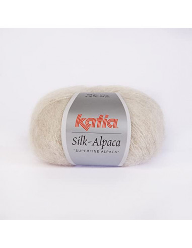 Katia Silk Alpaca est un fil très doucx en alpaga et soie. Tricoter avec des aiguilles d'environ 4-4,5 mm ou crochet aiguilles de 2-2,5 mm. Chaque écheveau est de 25 grammes et 150 mètres. Composition: 74% alpaga et 26% soie. Lavage à la main.