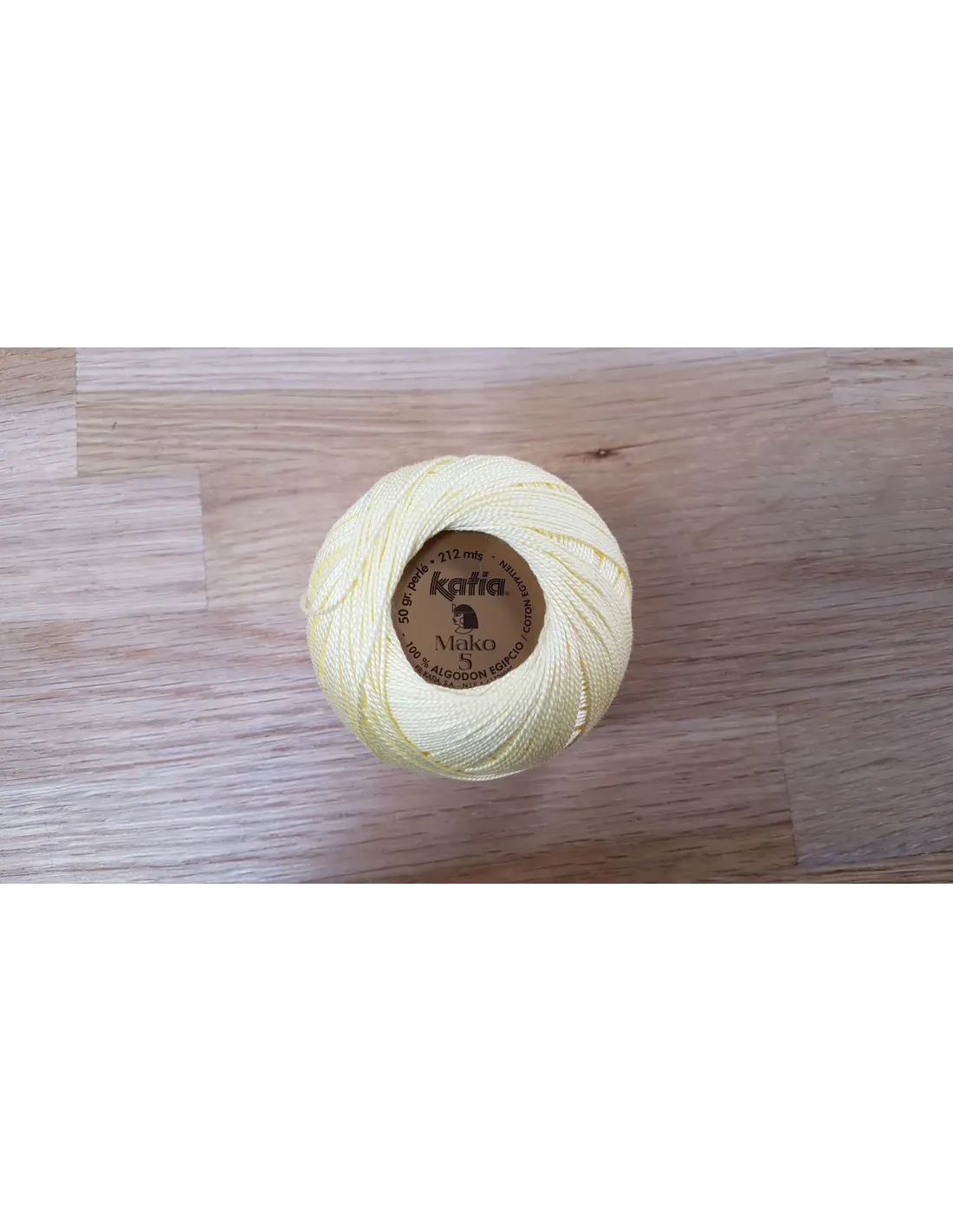 Laine Katia Coton Mako 5. C'est un fil coton (égyptien) perlé idéal pour crocheter la dentelle afin de réaliser des Dessus de lit, des nappes et des articles de déco pour la maison