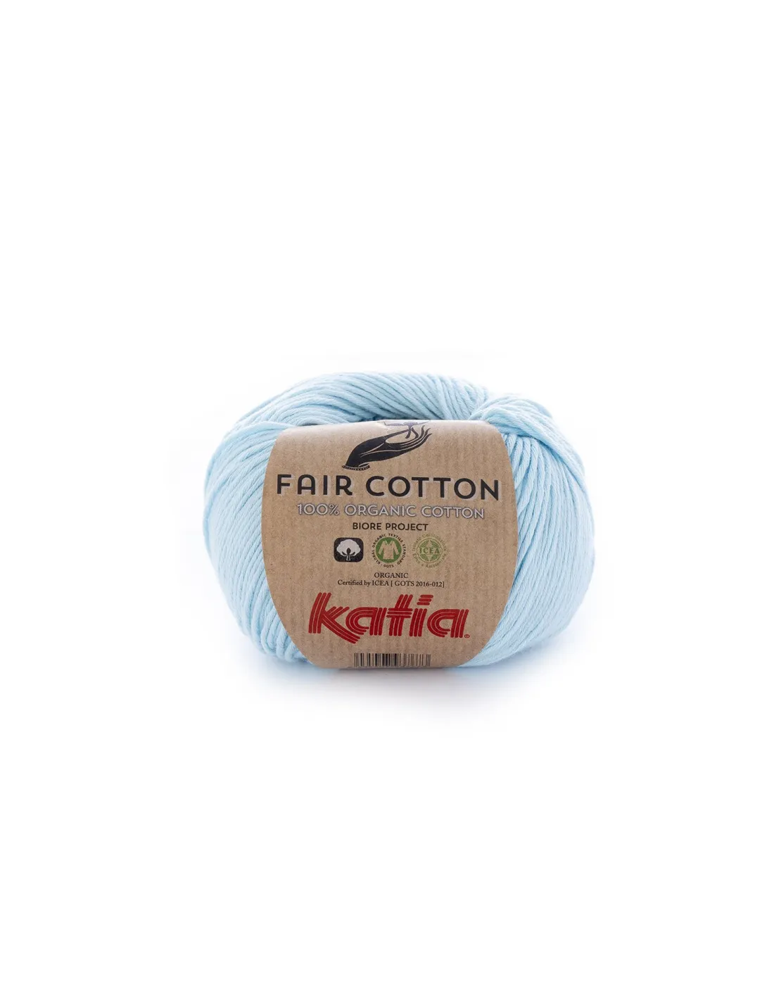 Coton bio, respectueux de l'environnement et sans aucune substance toxique. Ce coton est pariculièrement indiqué pour les peaux sensibles et est parfait pour les vestes et gilets de bébé, pour les grenouillères confortables ou les douces couvertures. Avec Fair Cotton, on peut églement tricoter et crocheter tops pour l'été, robes légères et pulls pour enfants.