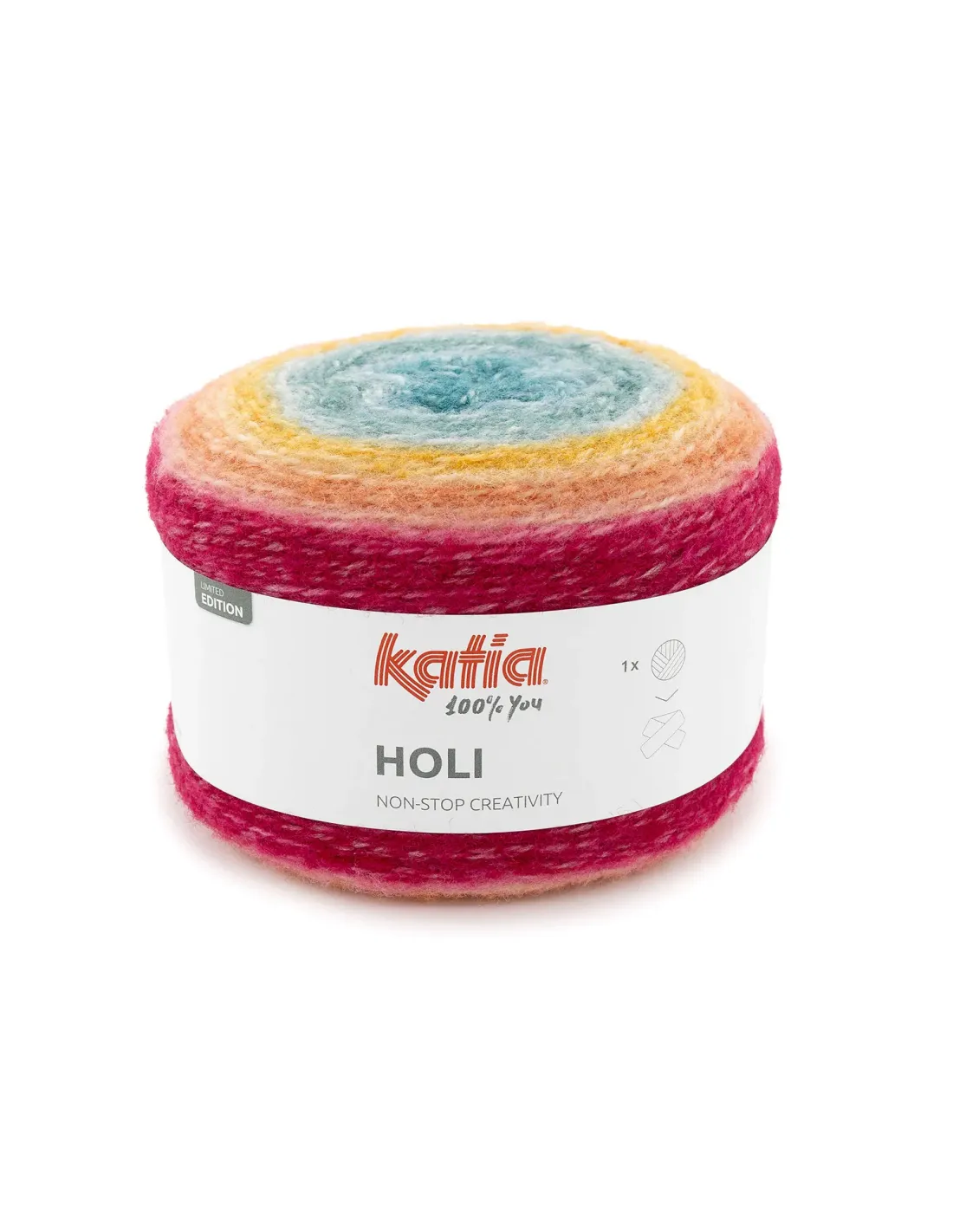Laissez-vous séduire par Katia Holi, un fil unique au dégradé parfait, présenté en cakes de 200 g. Son mélange innovant de laine, d’acrylique et de polyamide lui confère de la structure, un joli gonflant et un subtil effet poilu très tendance. Tricotez une écharpe ou crochetez un châle avec une seule pelote ! Créez des pièces uniques et multicolores pour l'hiver avec Katia Holi.