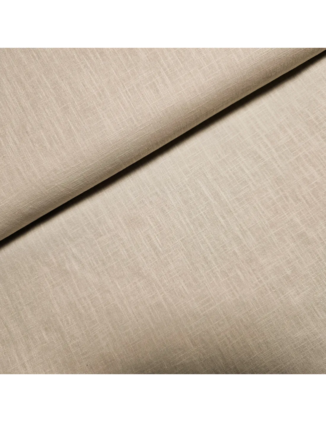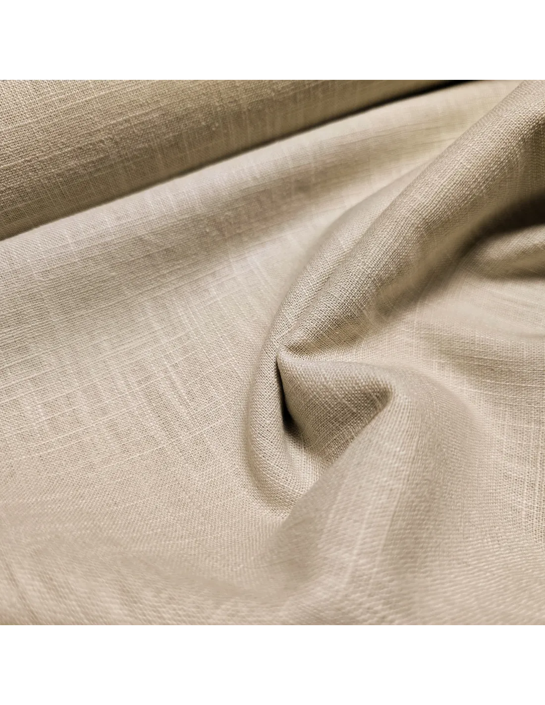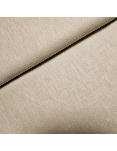 Lin uni beige. Ce tissu possède une bonne tenue et peut être utilisé pour l'habillement comme l'ameublement.