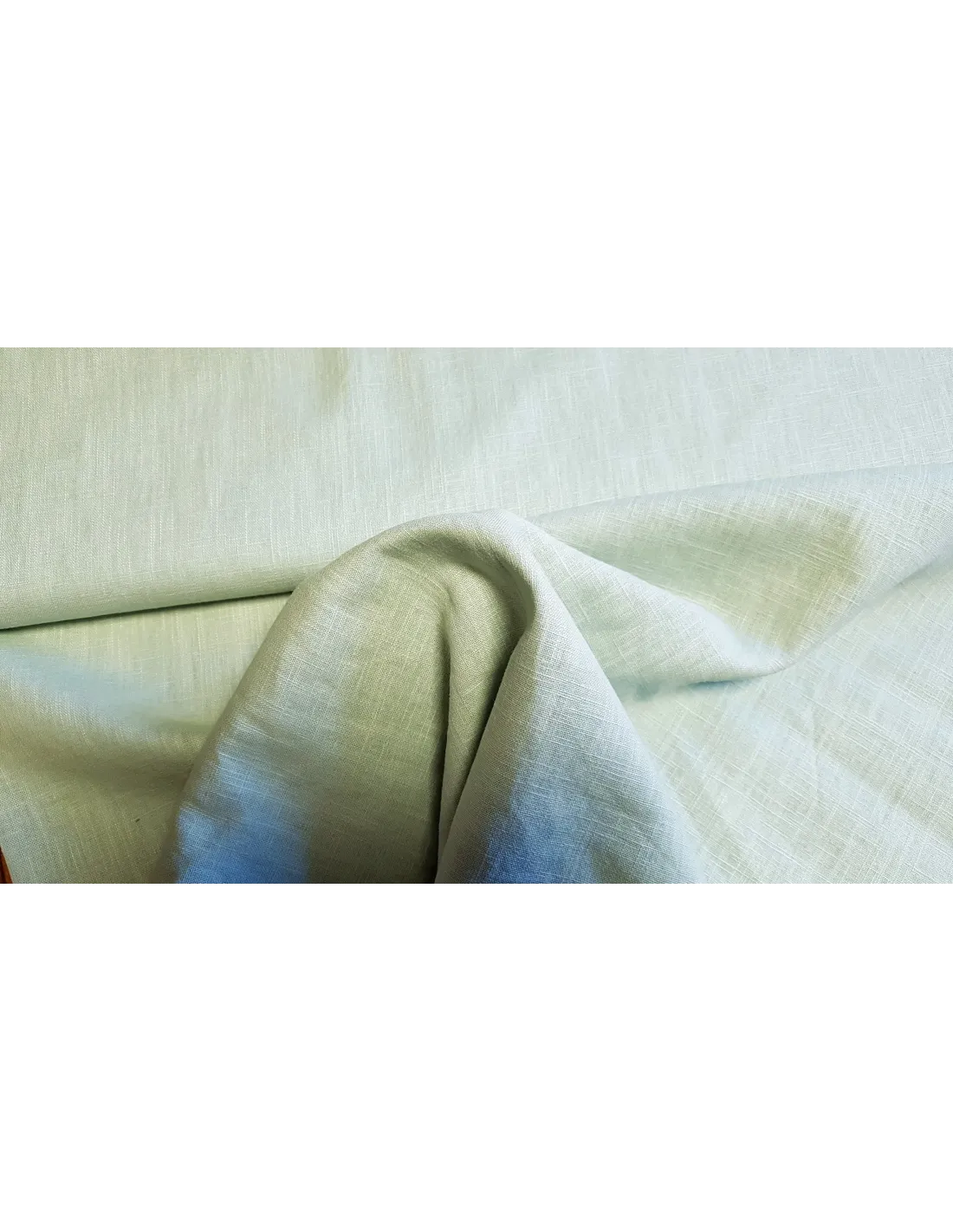 Lin uni vert d'eau. Ce tissu possède une bonne tenue et peut être utilisé pour l'habillement comme l'ameublement