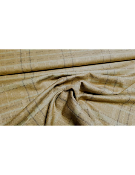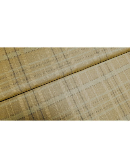 Beau tissu lin à rayures avec polyester vert kaki. Ce tissu peut être utilisé pour l’habillement comme l'ameublement.