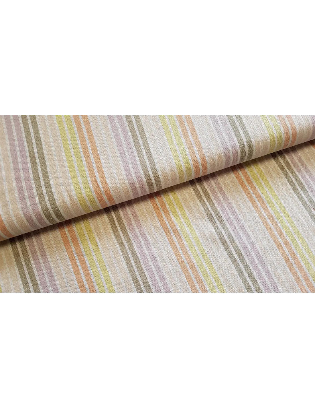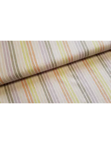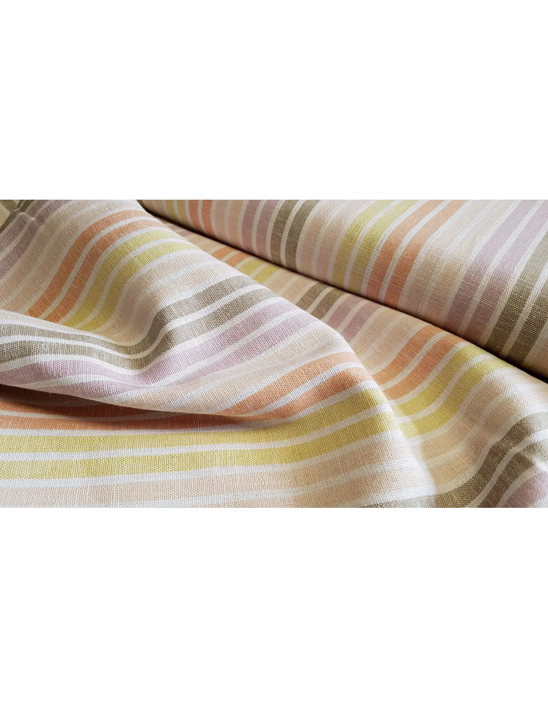Tissu mélangé lin et viscose, tissé rayures multicouleurs. Ce tissu est plus souple qu'un lin 100%. Parfait pour un pantalon d'été ou un short, une chemise...
