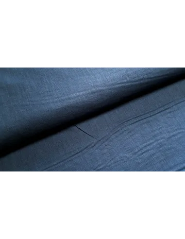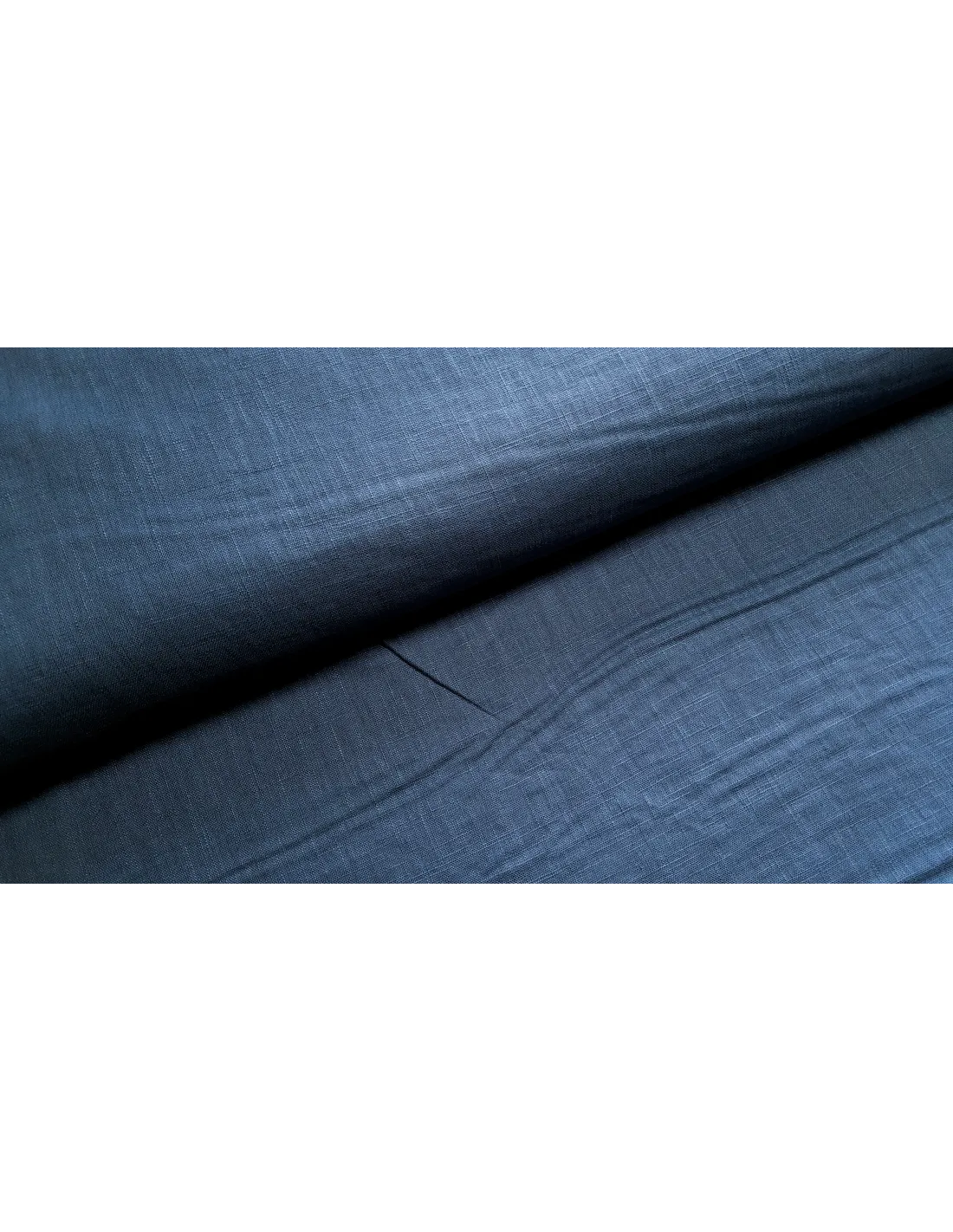Lin uni bleu jeans. Ce tissu possède une bonne tenue et peut être utilisé pour l'habillement comme pour l'ameublement