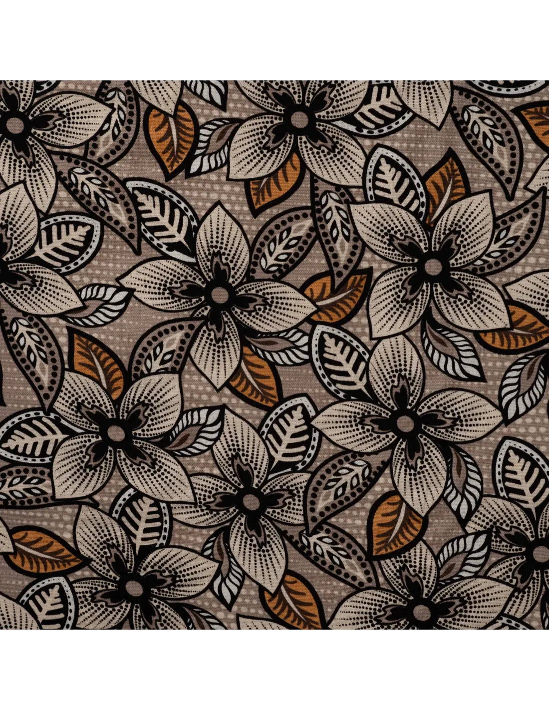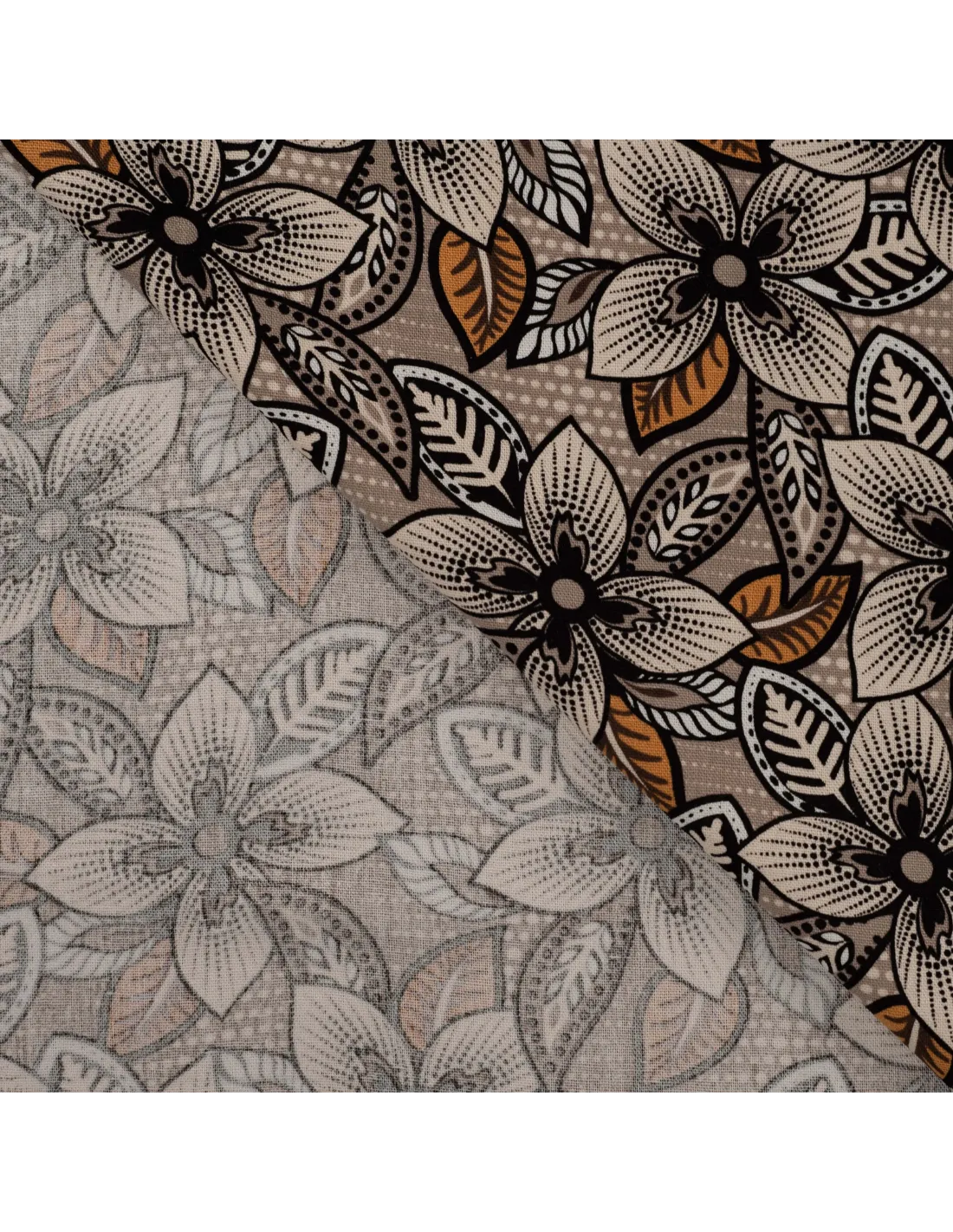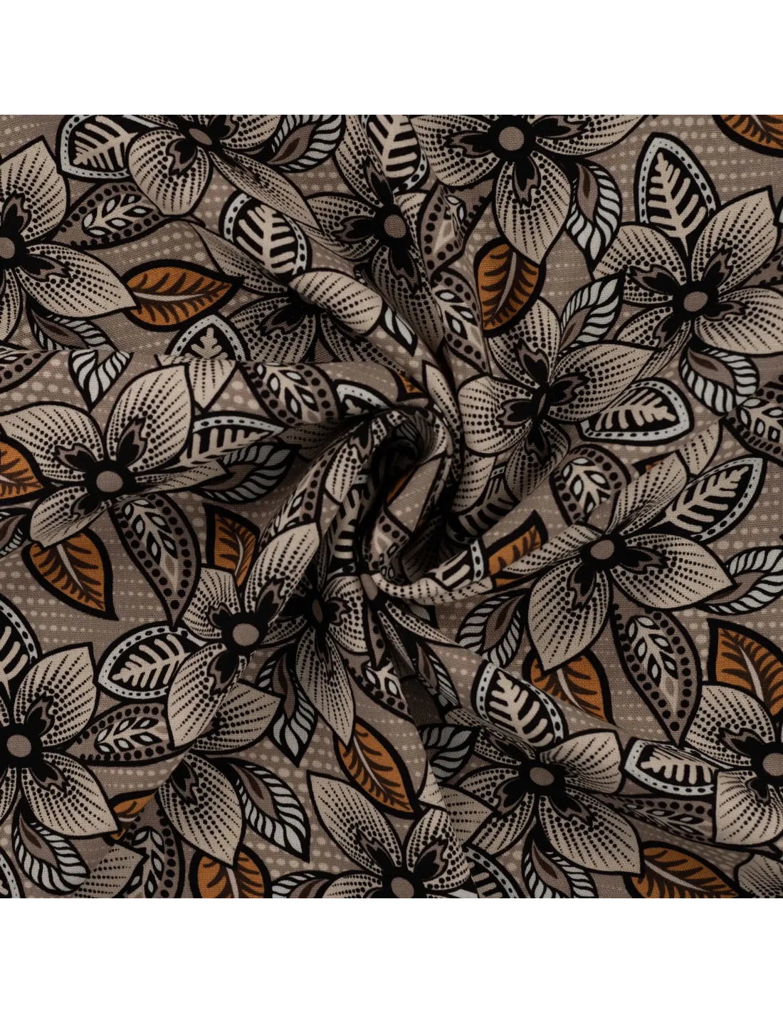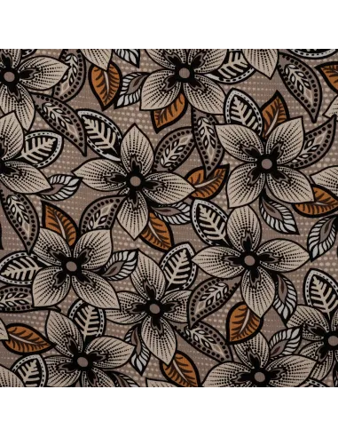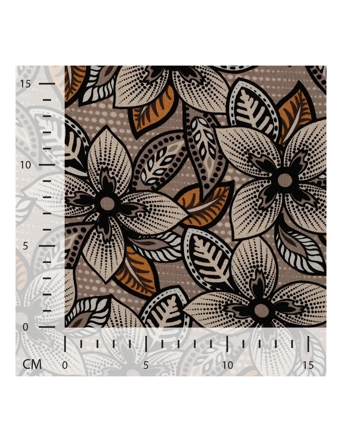 Tissu mélangé lin et viscose, imprimé fleurs. Ce tissu est plus souple qu'un lin 100%. Parfait pour un pantalon d'été ou un short, une chemise...
