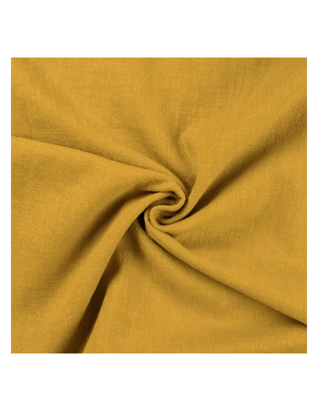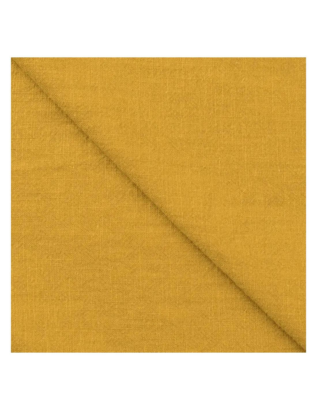 Lin uni jaune moutarde. Ce tissu en lin est plutôt souple et peut être utilisé pour l'habillement comme l'ameublement.