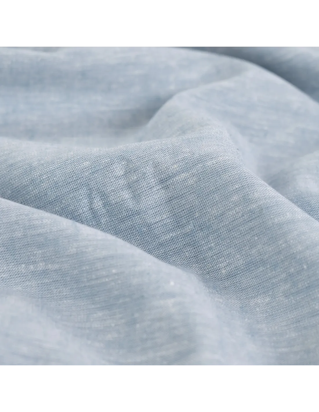 Esthétique Chinée : Le mélange des fibres crée un effet de texture visuelle subtile dans des tons bleu denim et gris perle, offrant un look naturel et intemporel.