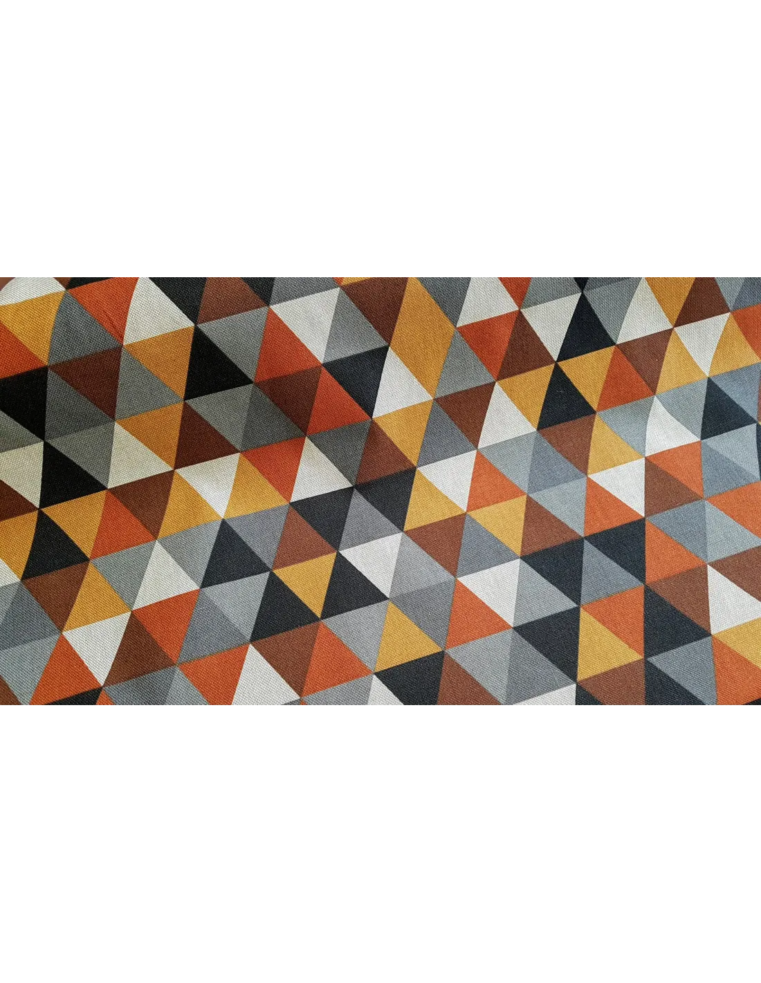 Support imitation lin aux motifs triangles rouilles Tissu un peu épais (bachette). Convient pour la confection de rideaux, housses de canapé, coussins, sacs...