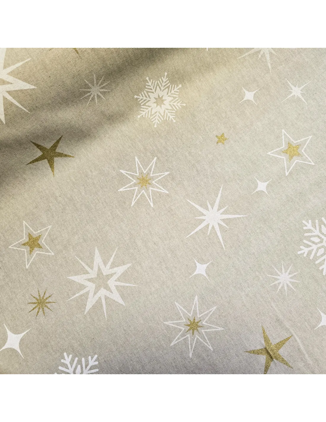 Tissu demi-natté étoiles blanches et dorées. Tissu un peu épais (bachette).
