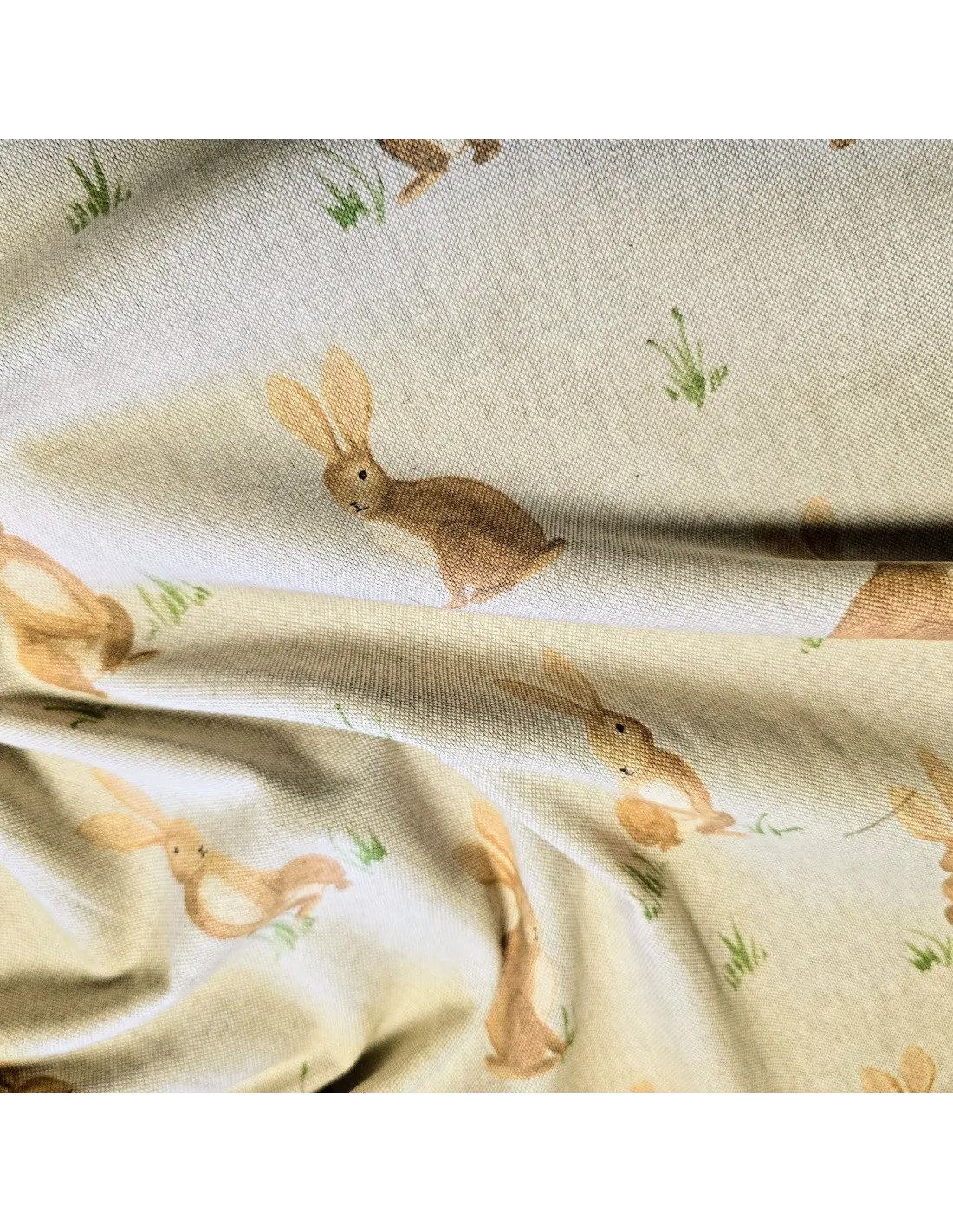 Tissu demi-natté lapins. Tissu un peu épais (bachette).