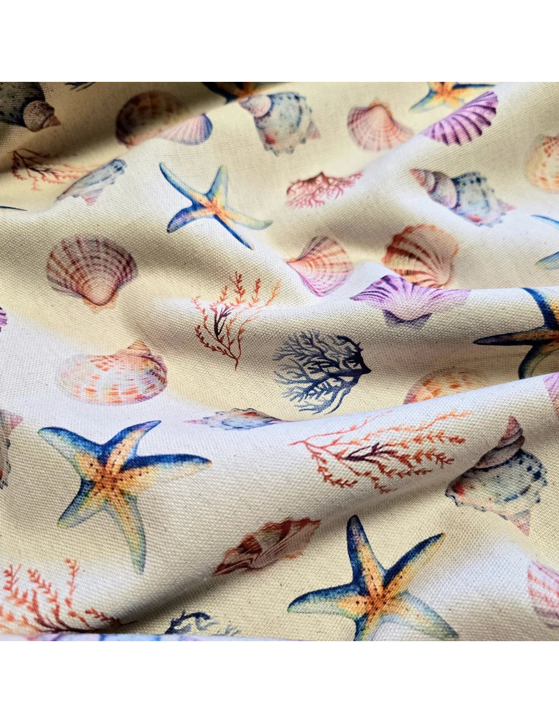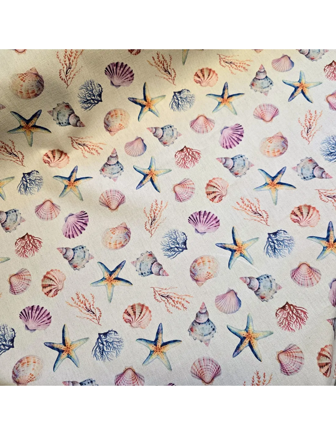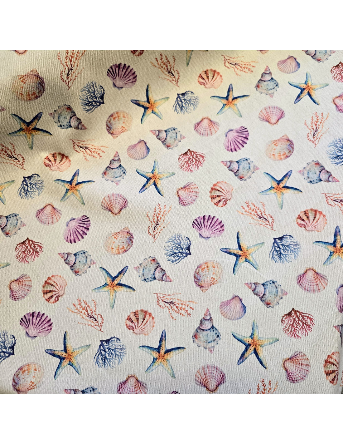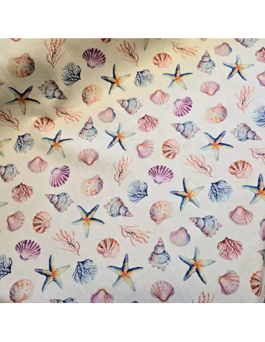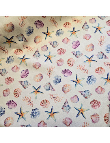 Tissu demi-natté coquillages. Tissu un peu épais (bachette).