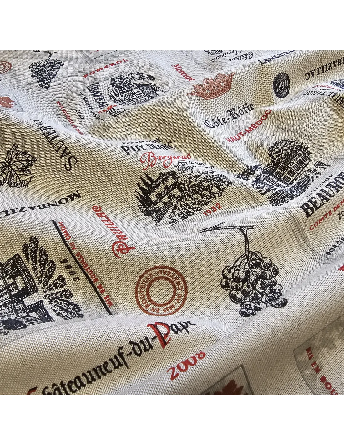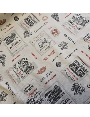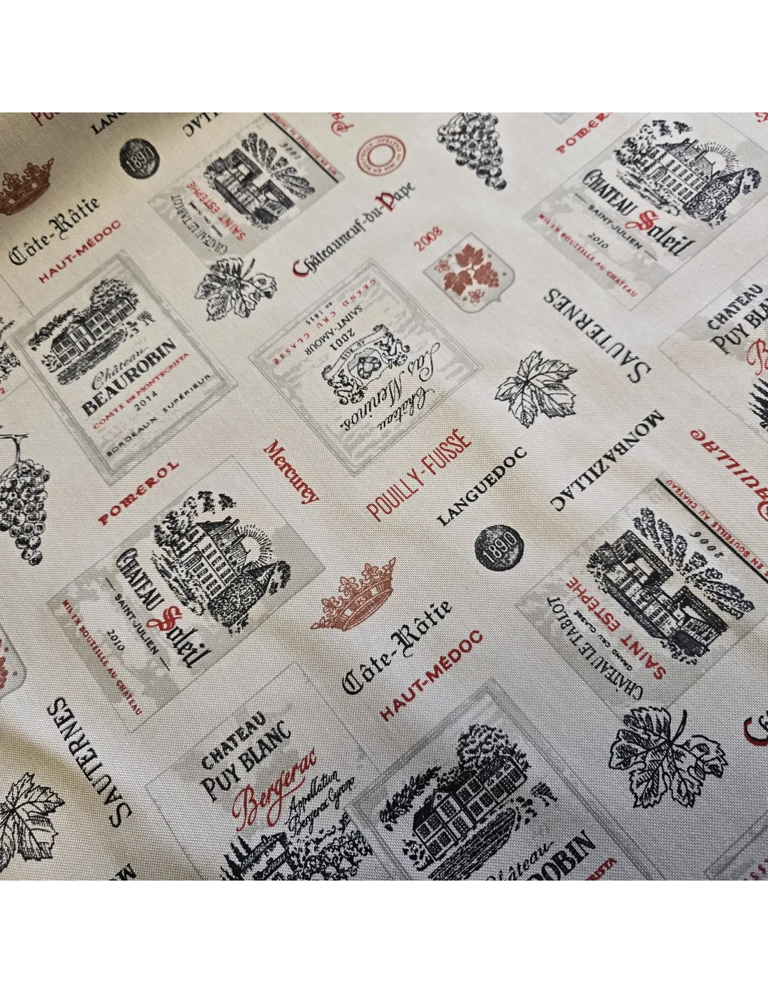 Imprimé Viticole : Le design célèbre l'art de vivre avec des illustrations détaillées de bouteilles, de verres et de références aux grands crus, parfait pour une décoration typée "bistrot" ou "maison de campagne".