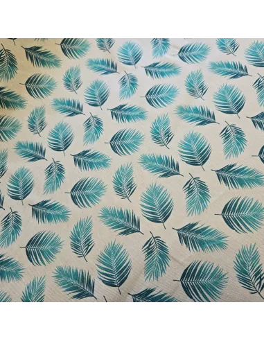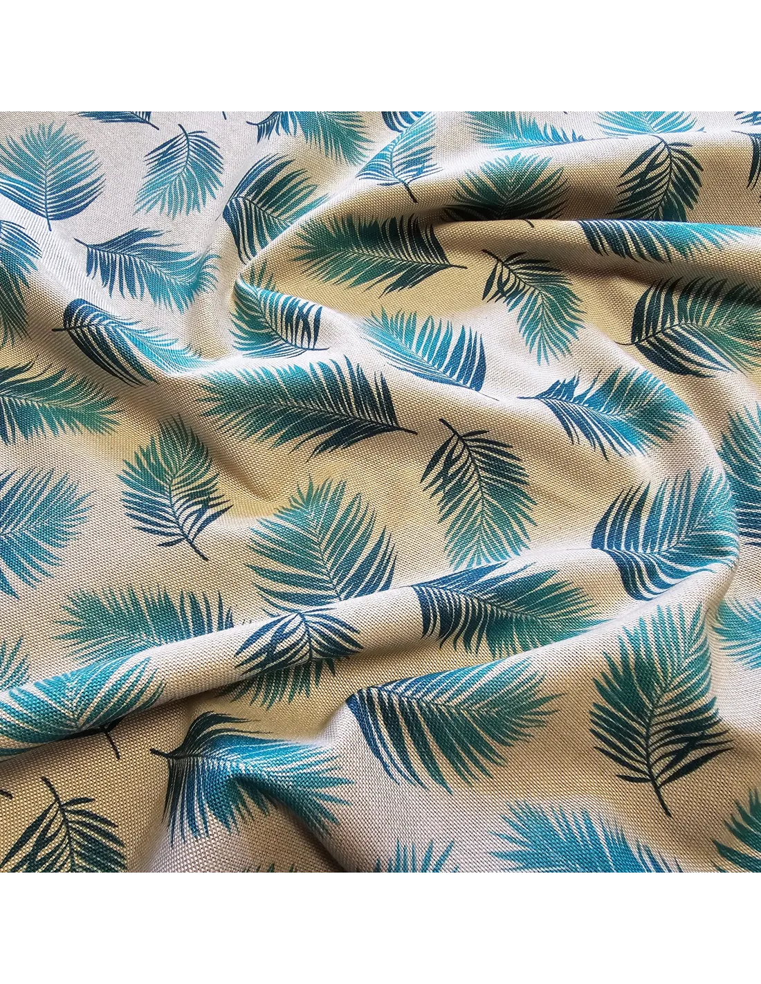 Motifs de Feuilles Graphiques : Un imprimé de feuillage stylisé parcourt l'étoffe, créant un rythme visuel harmonieux qui s'adapte aussi bien à une ambiance naturelle que contemporaine.
