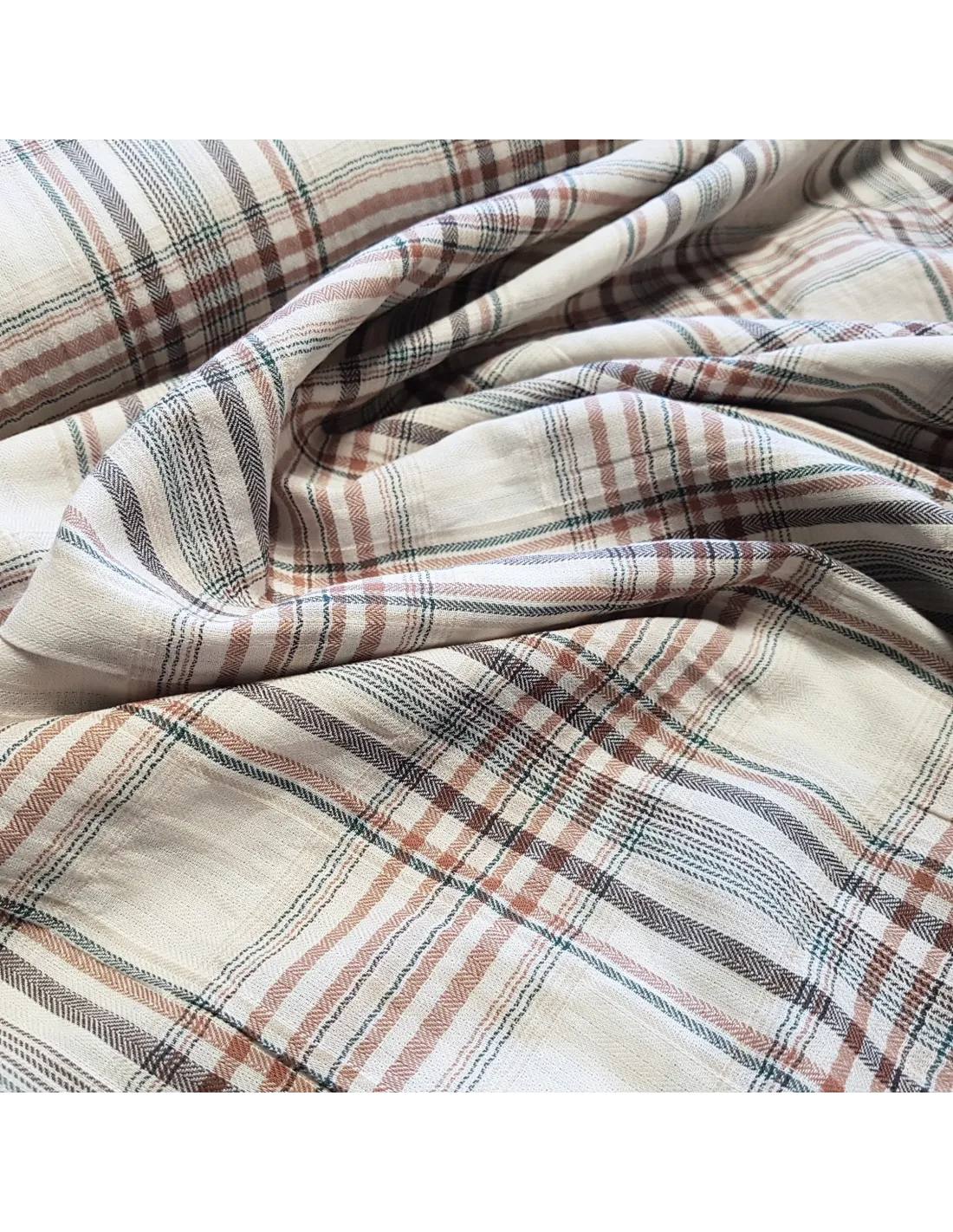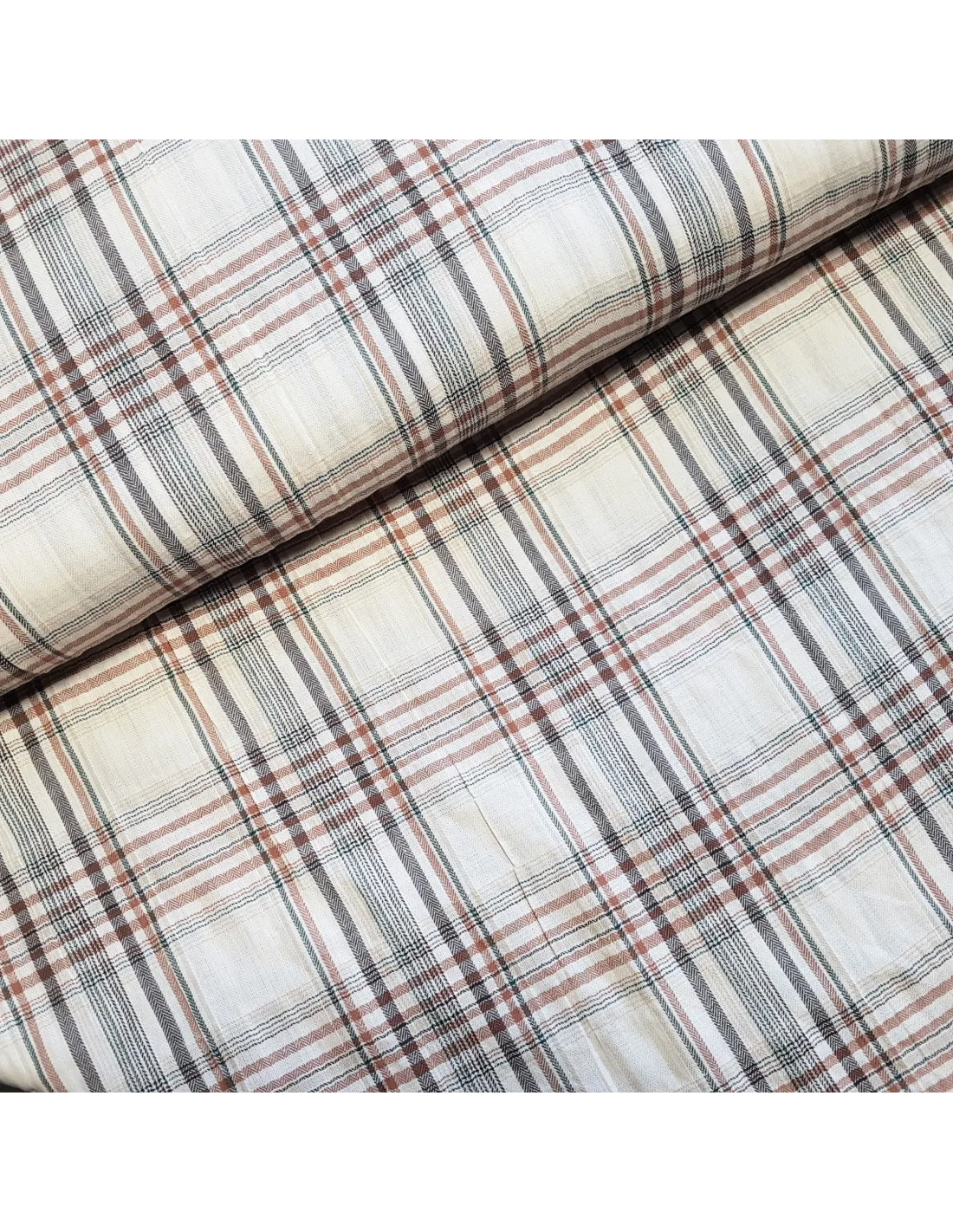 Tissu madras dans les tons beiges et terracotta. Superbe pour une chemise ou un top.