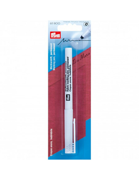 Le crayon à marquer indélébile de Prym est particulièrement adapté pour tracer les marquages. Le marqueur indélébile, un stylo-feutre noir imperméable à l’eau, devrait être monté verticalement vers le bas avec la pointe de la mine. Avec une épaisseur de mine de 2 mm, des lignes épaisses peuvent être parfaitement tracées sur les tissus clairs et sur les tissus multicolores. La fine finition du crayon à marquer est particulièrement appropriée pour des marquages très fins et des inscriptions sur le tissu. Le marquage des patrons et des gabarits est également tout à fait possible avec ce crayon à marquer indélébile imperméable à l'eau.
