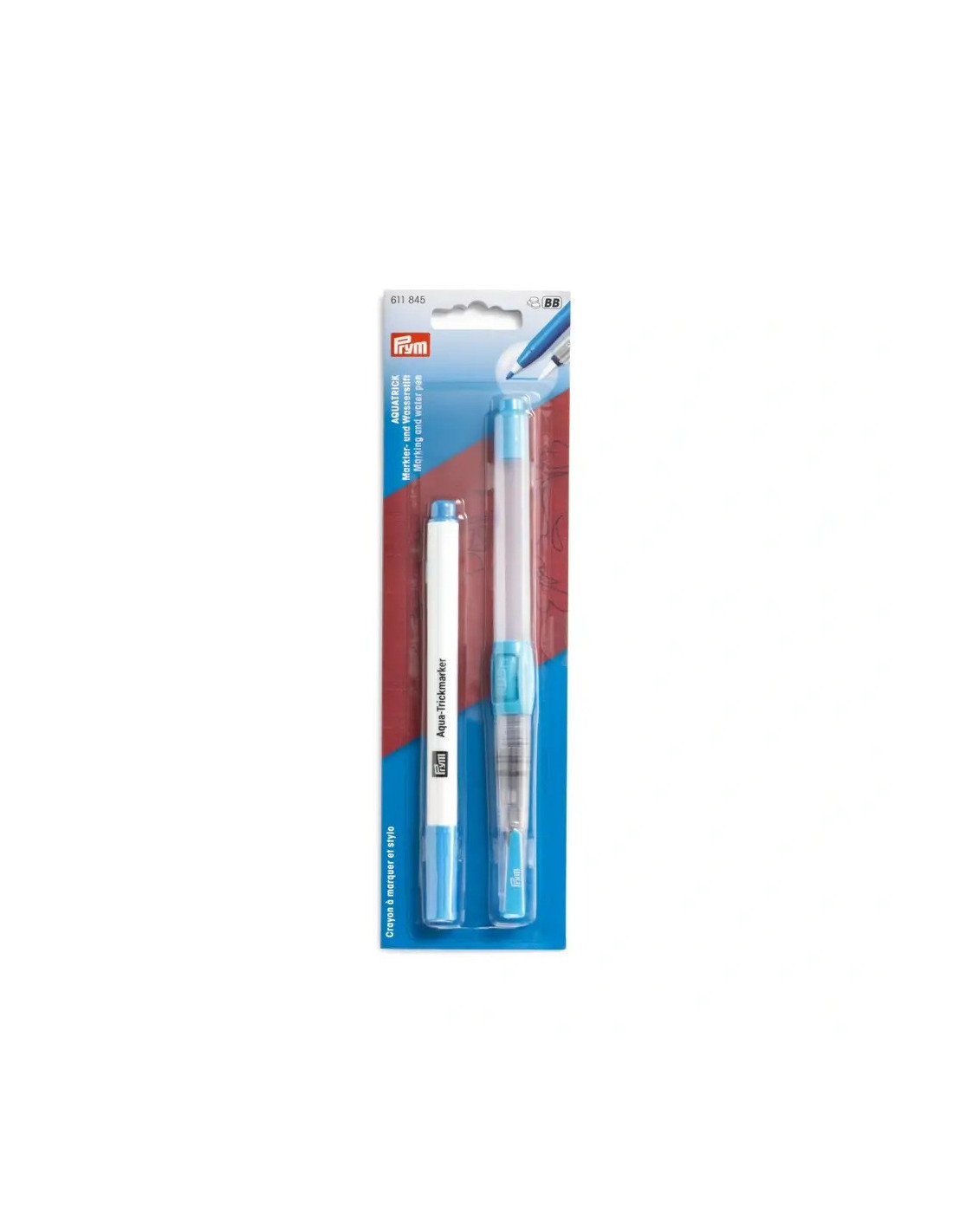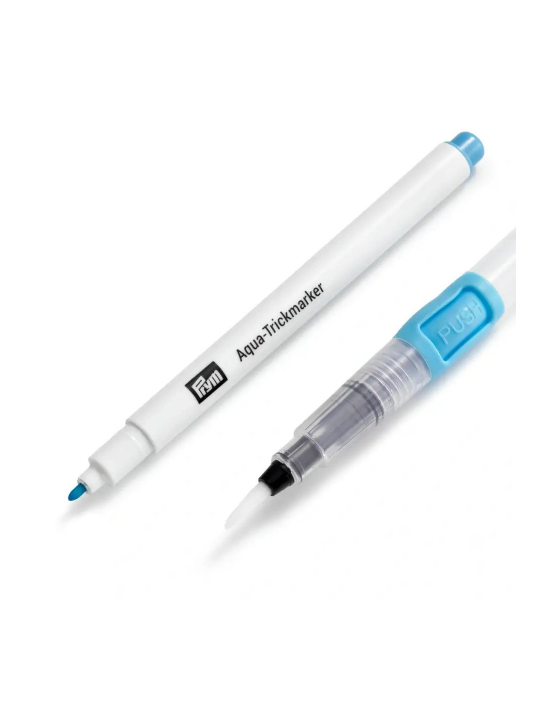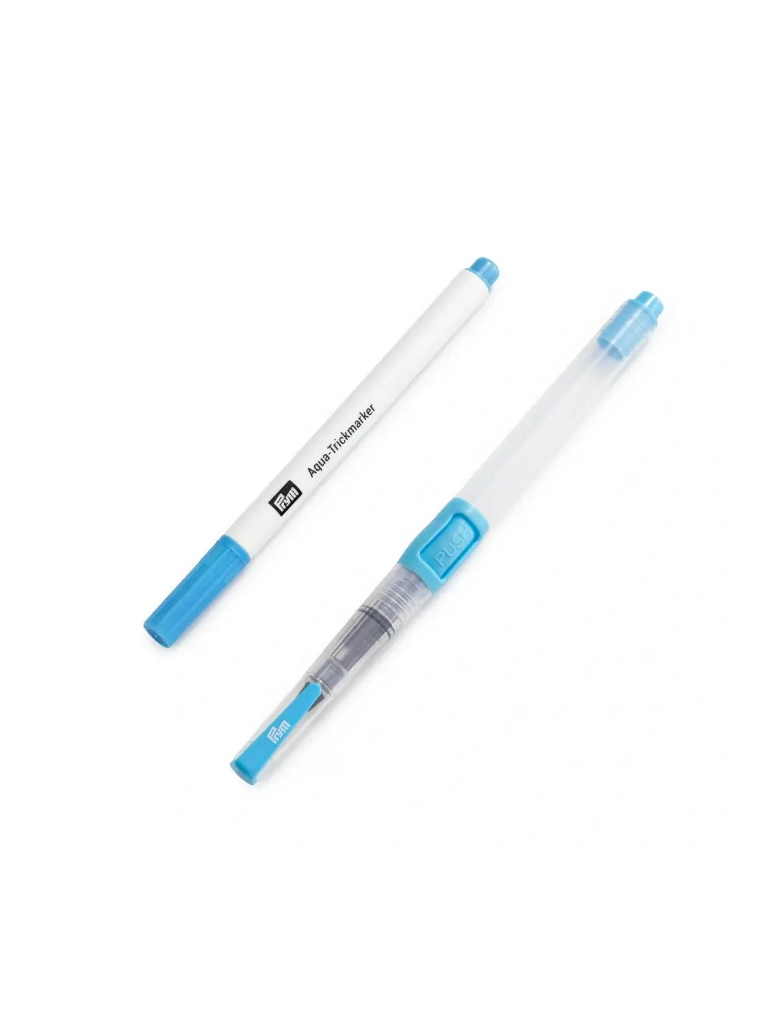 Une combinaison qui séduit : Avec le aqua trick marker soluble dans l’eau et le stylo à eau, le marquage et l’élimination des lignes lors des travaux de broderie, de couture, de patchwork et de quilting etc. se fait désormais en un tour de main. Le aqua trick marker est particulièrement bien adapté pour le traçage des marquages sur les tissus qui après ne sont plus visibles. Il doit être monté verticalement avec le capuchon vers le bas pour l’empêcher de sécher. Le stylo à eau permet d’enlever les marquages avec précision et sans laisser de trace avant le repassage. Il peut également être utilisé pour transférer des marquages rapides : Le stylo est rempli avec de l’eau et crée des lignes précises sur le tissu par la pointe humide. En outre, les taches peuvent être facilement éliminées avec le stylo à eau s’il contient de l’eau et un produit anti-taches. Important : Testez à l’avance les caractéristiques de marquage du marquer et d’élimination du marquage du stylo sur un échantillon de tissu !