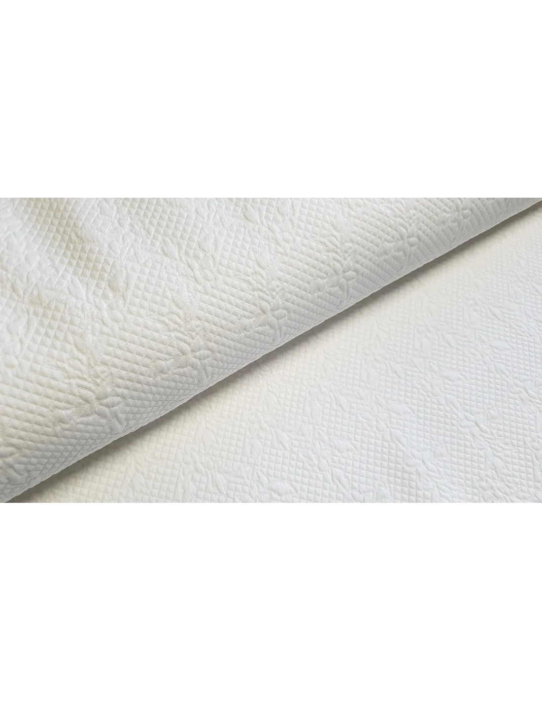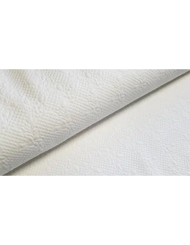 Matelassé uni blanc stretch. Ce tissu est idéal pour la confection d'un nid douillet: gigoteuse, tour de lit, couverture... Il est également possible de réaliser de beaux manteaux.