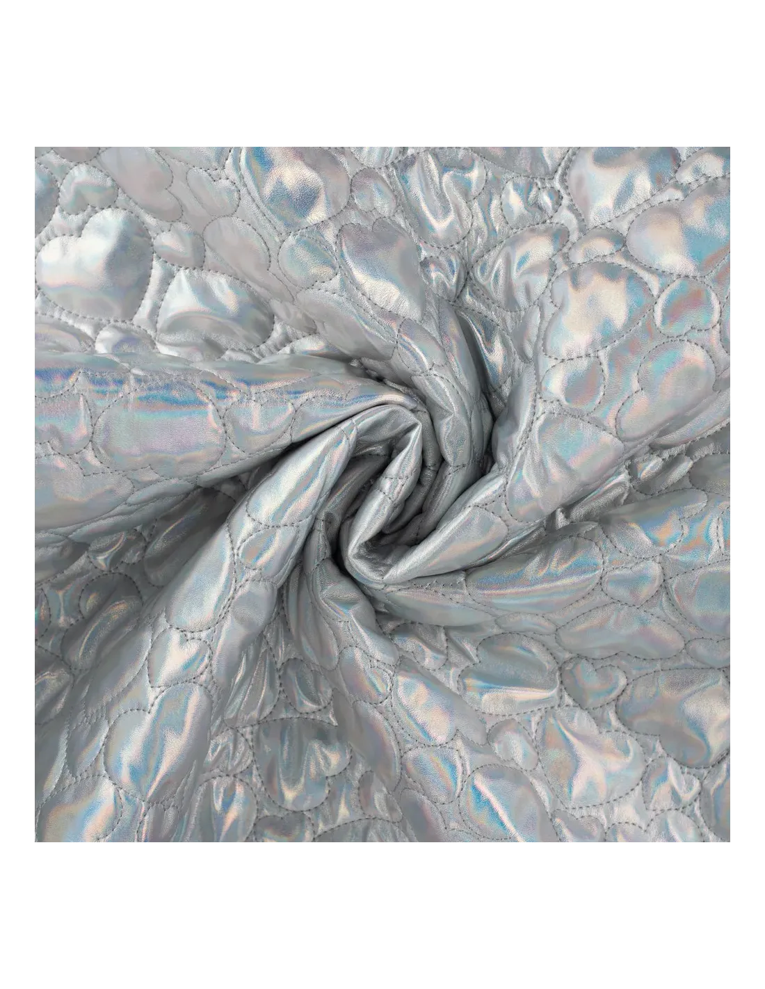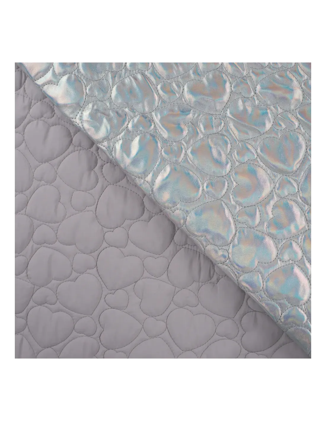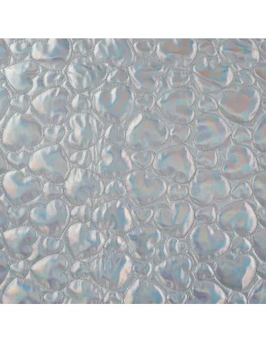 Matelassé cœurs, argenté. Ce tissu est idéal pour la confection d'une doudoune, d'un manteau...