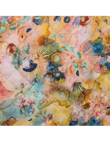 Matelassé impression digitale multicolore envers doublure simple. Pour toutes vos créations.