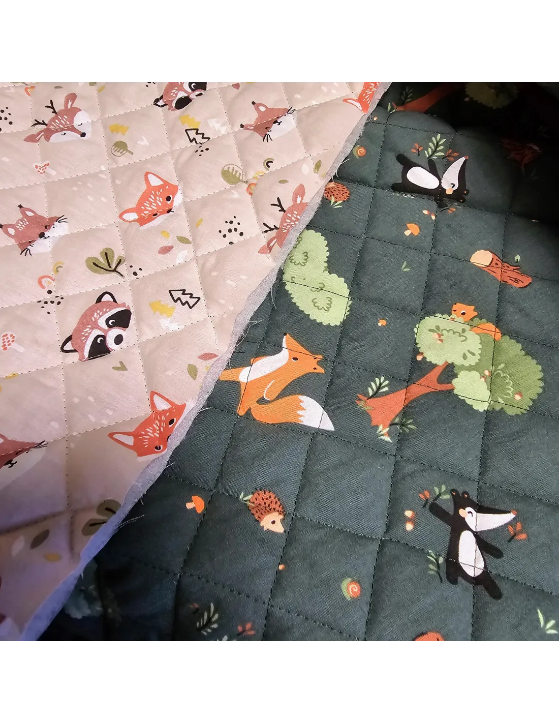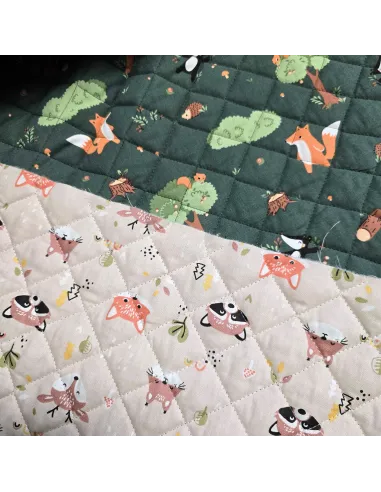 đŠ Tissu MatelassĂ© RĂ©versible - Renards de la ForĂȘt (Beige & Sapin)