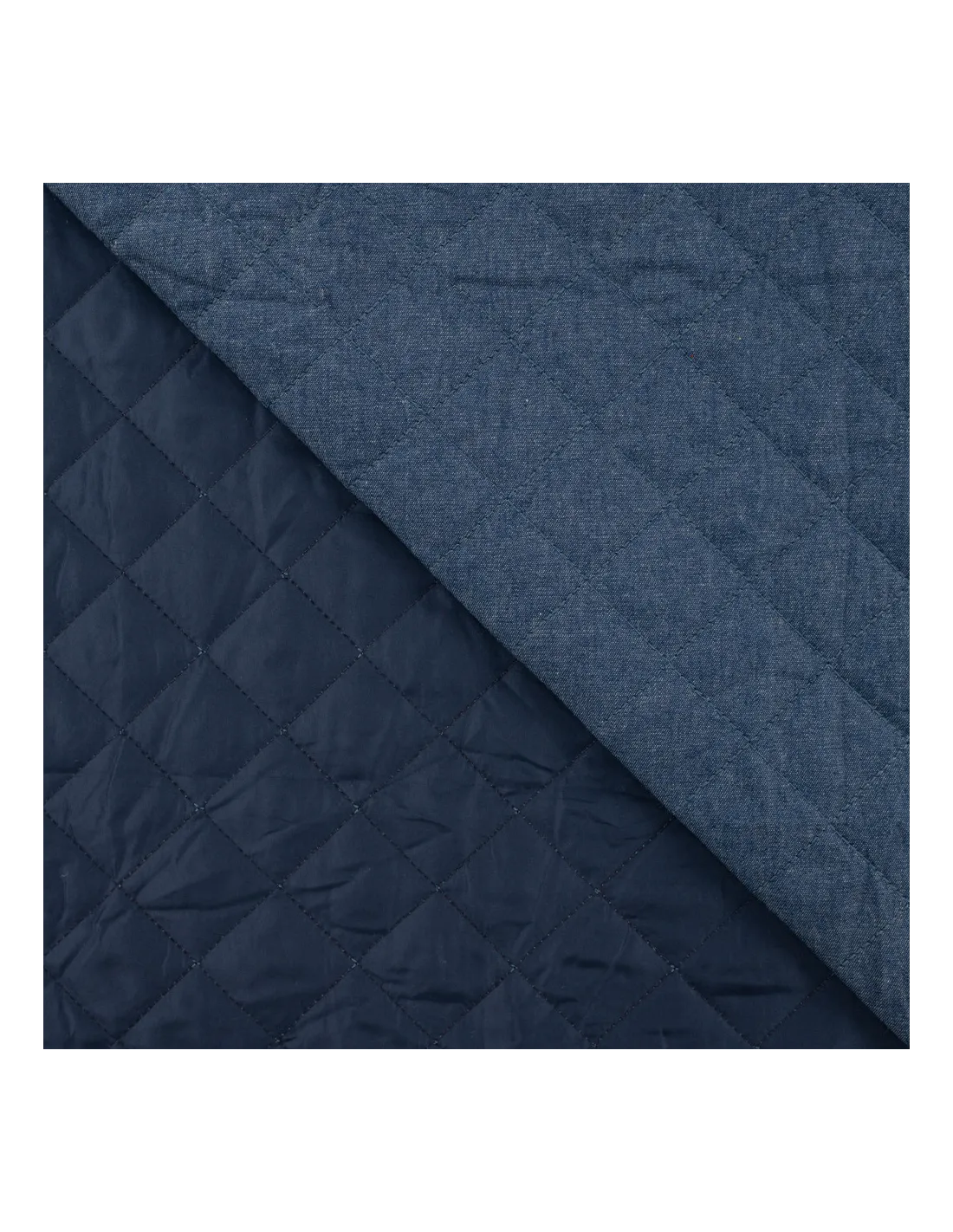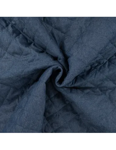 Alliez style et protection avec ce tissu matelassé d'exception. Son tissage chambray lui donne cette couleur denim intemporelle, tandis que son piquage en losanges apporte une structure moelleuse et élégante à toutes vos créations.