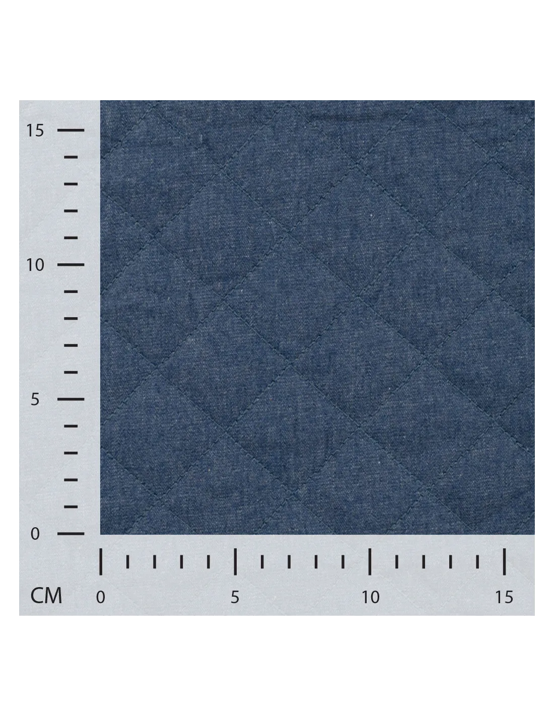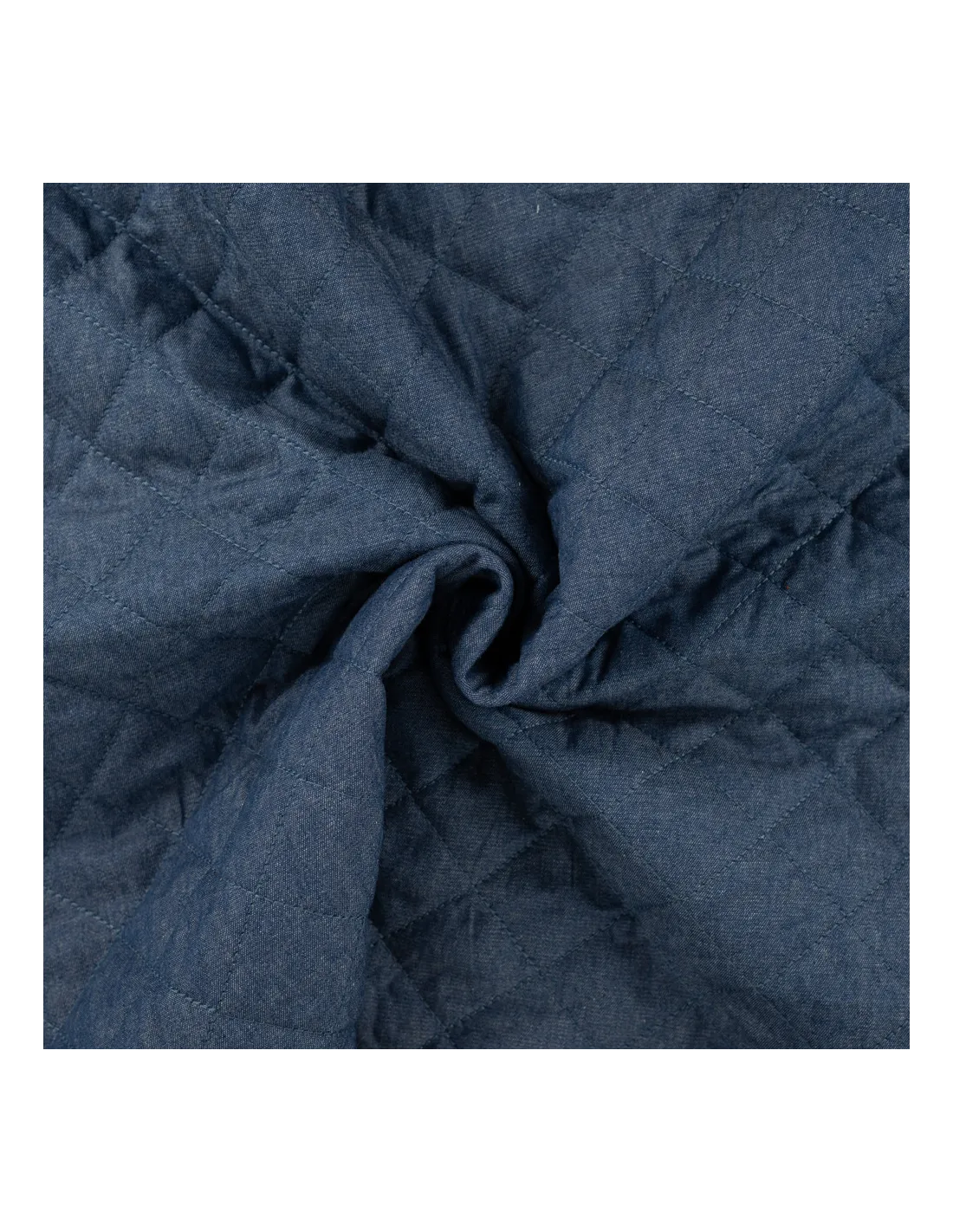 Alliez style et protection avec ce tissu matelassé d'exception. Son tissage chambray lui donne cette couleur denim intemporelle, tandis que son piquage en losanges apporte une structure moelleuse et élégante à toutes vos créations.