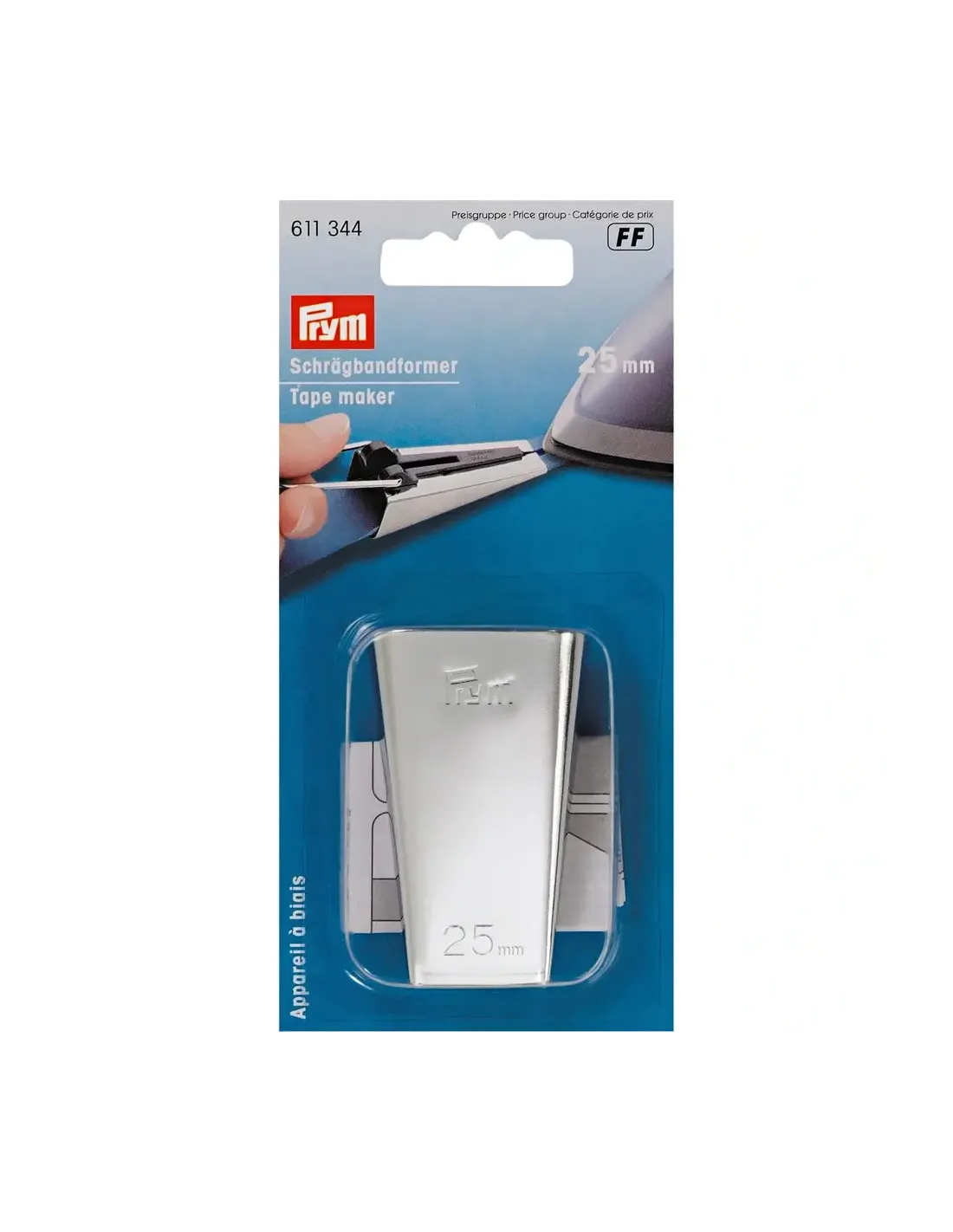 Les appareils à biais pratiques de Prym permettent de former parfaitement n’importe quel ruban en biais destiné à ourler les bords de tissu ou également les couvertures patchwork. En coupant le ruban de tissu à un angle de 45 degrés sur la course du fil du tissu, le ruban en biais est élastique et peut être parfaitement traité dans les courbes. Après avoir découpé les rubans de tissu et reliés entre eux, le tissu est introduit dans la grande ouverture de l’appareil à biais et tiré. Sur le côté plat de cet accessoire utile, le ruban en biais parfaitement plié peut être retiré et lissé directement avec le fer à repasser. Ainsi, le ruban en biais est confectionné rapidement et de manière fiable et peut être facilement enroulé pour une utilisation ultérieure.
