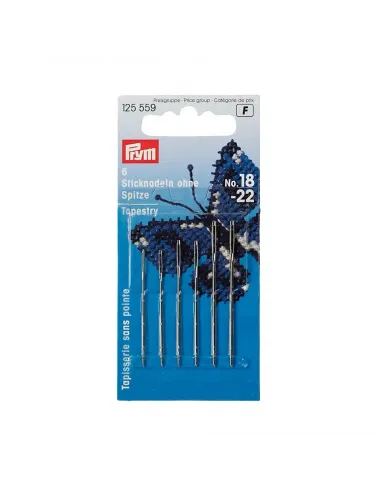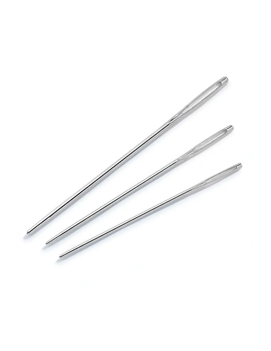 Les trois aiguilles laine sans pointe conviennent pour la broderie et les travaux de couture en tricot. Elles sont en acier inoxydable et ont un grand chas pour une utilisation de laine moyennement grossière et de laine grossière. La forme de la pointe arrondie protège les fibres de laine et le tapis à nouer. Grâce à leurs propriétés, les aiguilles laine sont également adaptées pour un travail avec les tapis smyrne. Le paquet contient 3 aiguilles dans les tailles 70 x 2,4 mm, 60 x 1,9 mm et 50 x 1,2 mm.