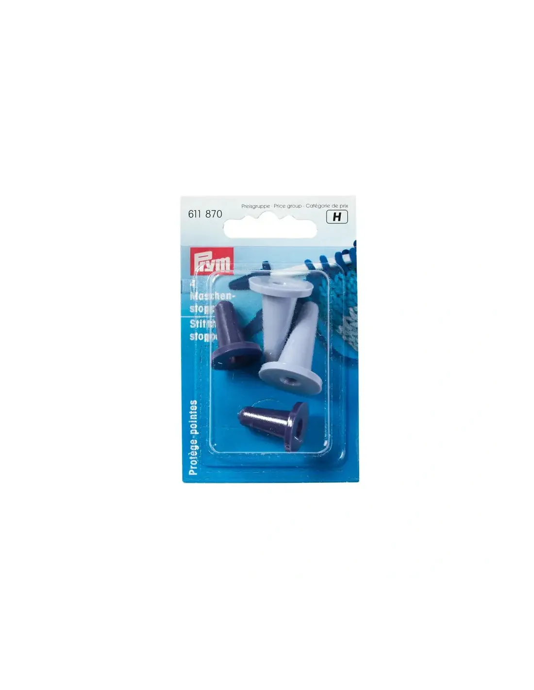 Les quatre protège-pointes en deux tailles de Prym empêchent le glissement du tricot quand elles sont insérées sur les extrémités des aiguilles à tricoter pour arrêter le travail. Les bords larges des chapeaux en plastique robustes assurent de manière fiable que toutes les mailles restent en place. Prym offre ces ustensiles de tricotage pratiques en bleu prune dans les épaisseurs d'aiguilles de 2 mm à 3,5 mm et en gris colombe dans les épaisseurs d'aiguilles de 4 mm à 7 mm.