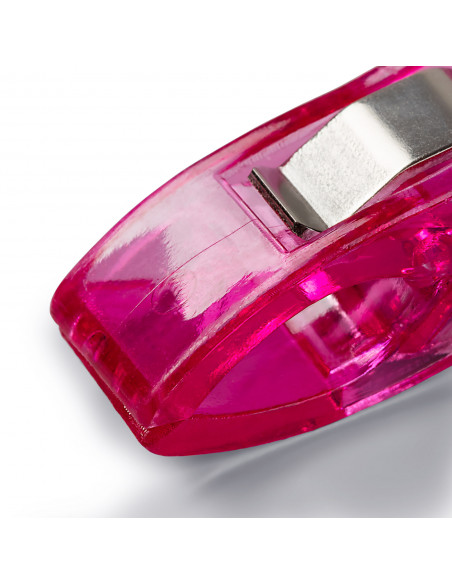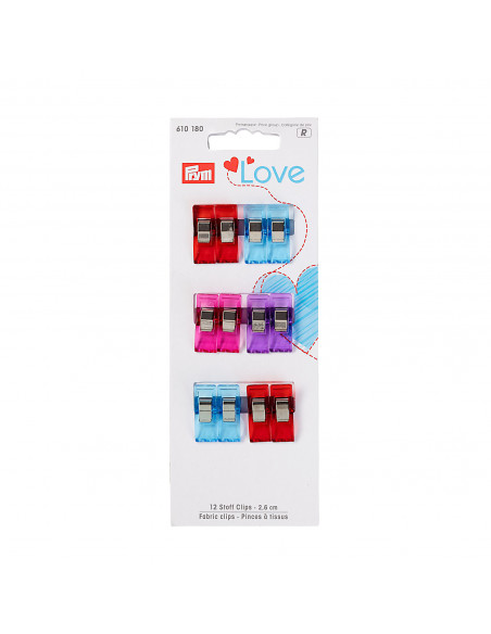 Les pinces à tissus de la série « Prym Love » offrent une alternative efficace pour les travaux de marquage avec des épingles à piquer habituelles. Les pinces à tissus sont particulièrement appropriées pour les tissus sur lesquels des points d’aiguilles sont visibles en permanence comme avec la toile cirée ou le cuir. Grâce aux pinces à tissus, le matériau est fixé facilement et rapidement, mais n’est pas endommagé. Ils offrent également un maintien solide avec plusieurs couches de tissu et sont des accessoires idéales pour la fixation des bordures de quilting. Les pinces à tissus en plastique de haute qualité sont disponibles en deux variantes : par carte de 12 pinces à tissus de 2,6 cm ou par carte de 8 pinces à tissus de 2,6 cm et 7 pinces de 5,5 cm. Les deux variantes offrent une agréable variété de couleurs en bleu, rose, violet et rouge – ainsi, le marquage de tissus est encore plus amusant.