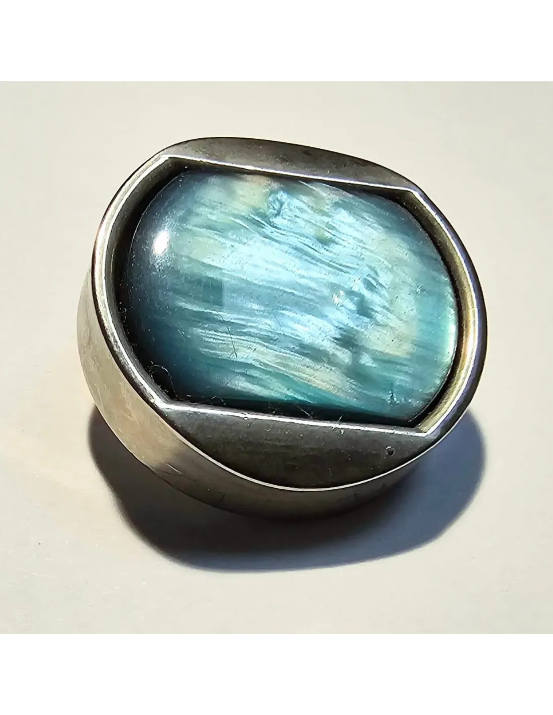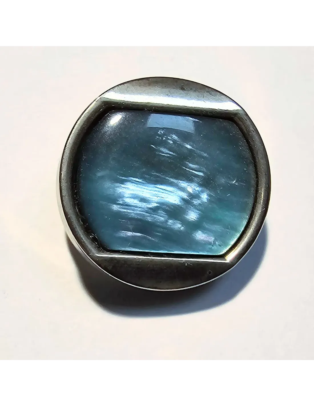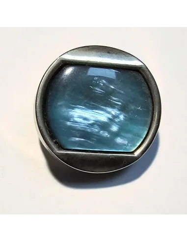 Bouton à pied, 23mm,  métal, reflet bleu turquoise