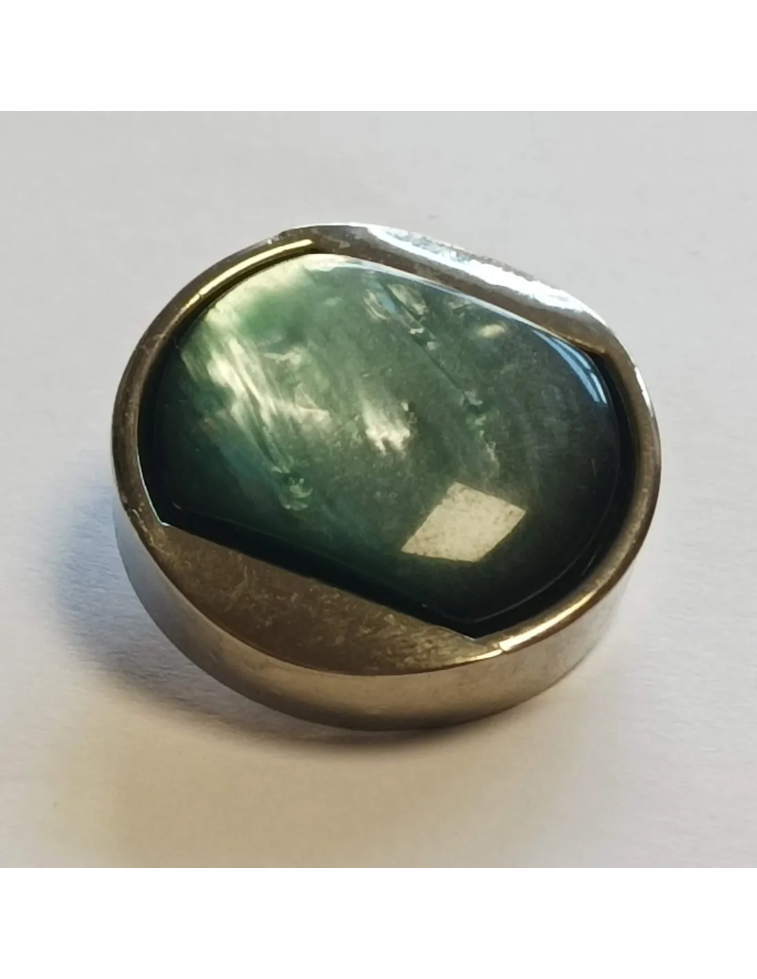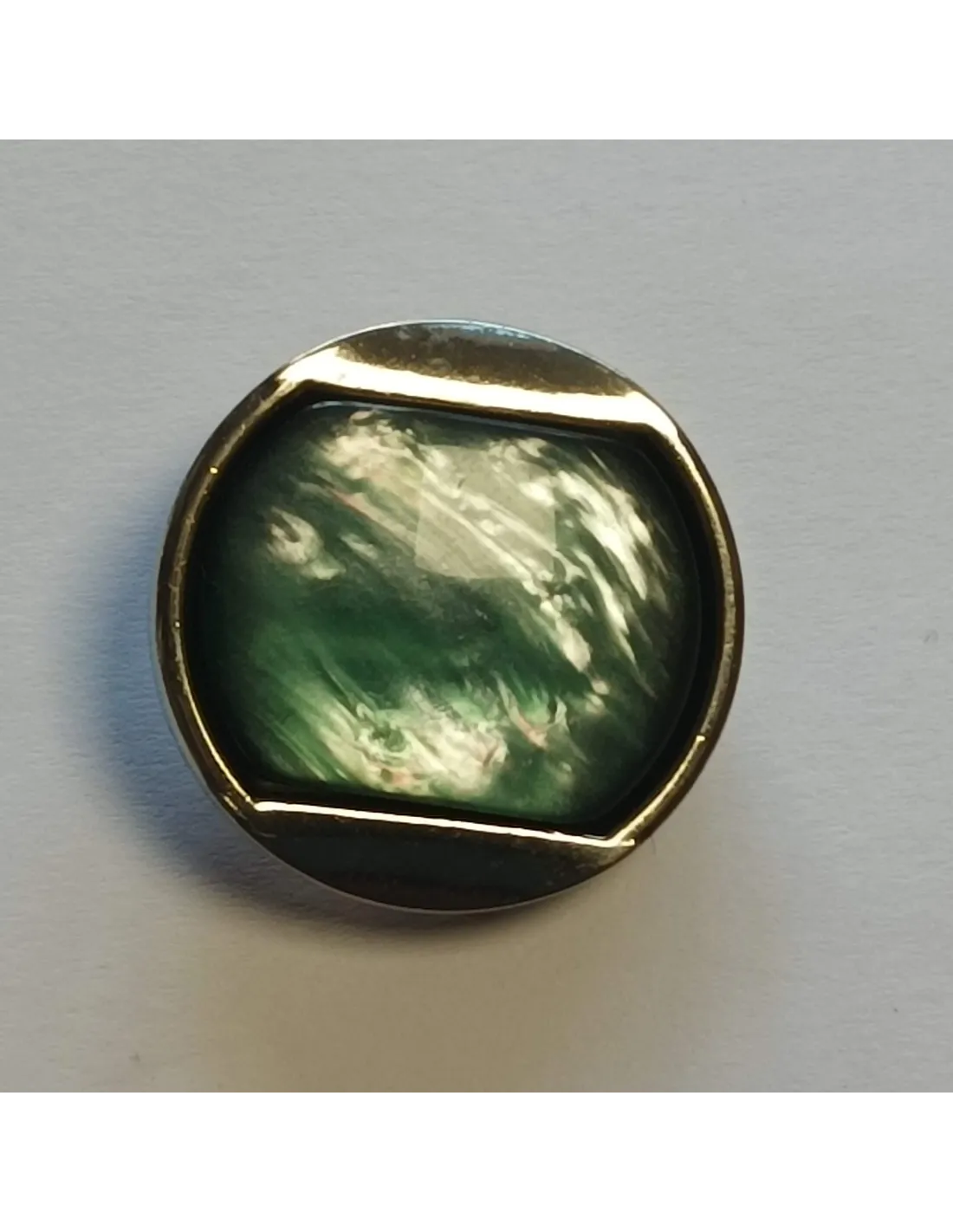Bouton à pied, 27mm, effet métal , reflet bleu turquoise