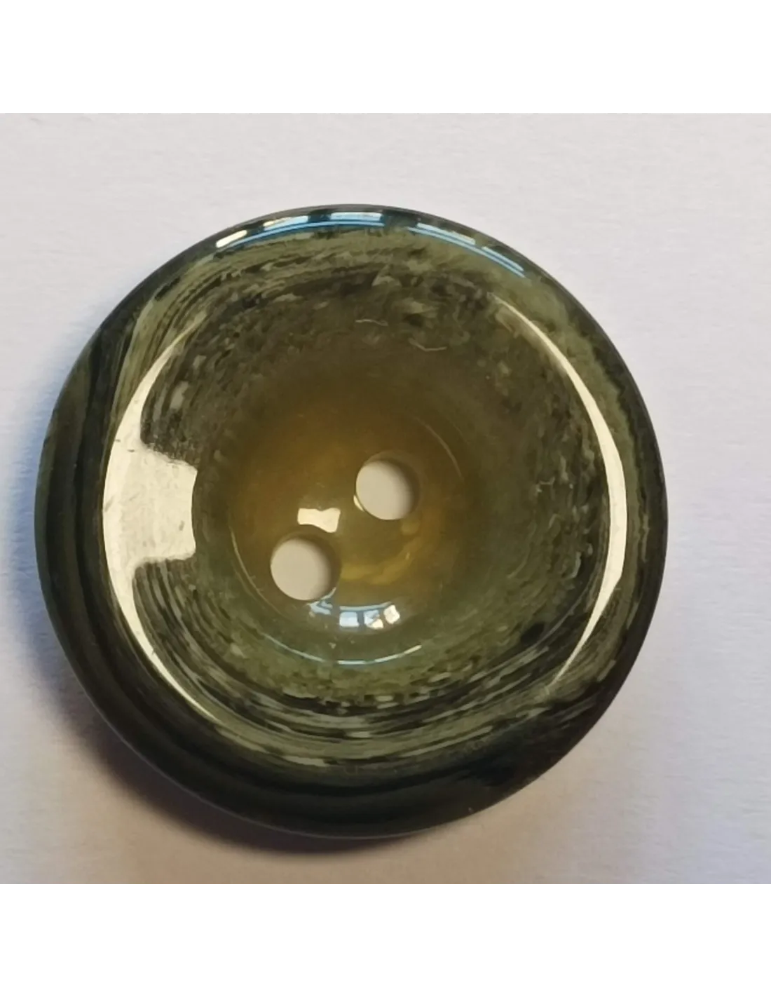 Bouton polyester 2 trous, 27mm, rond , vert/kaki