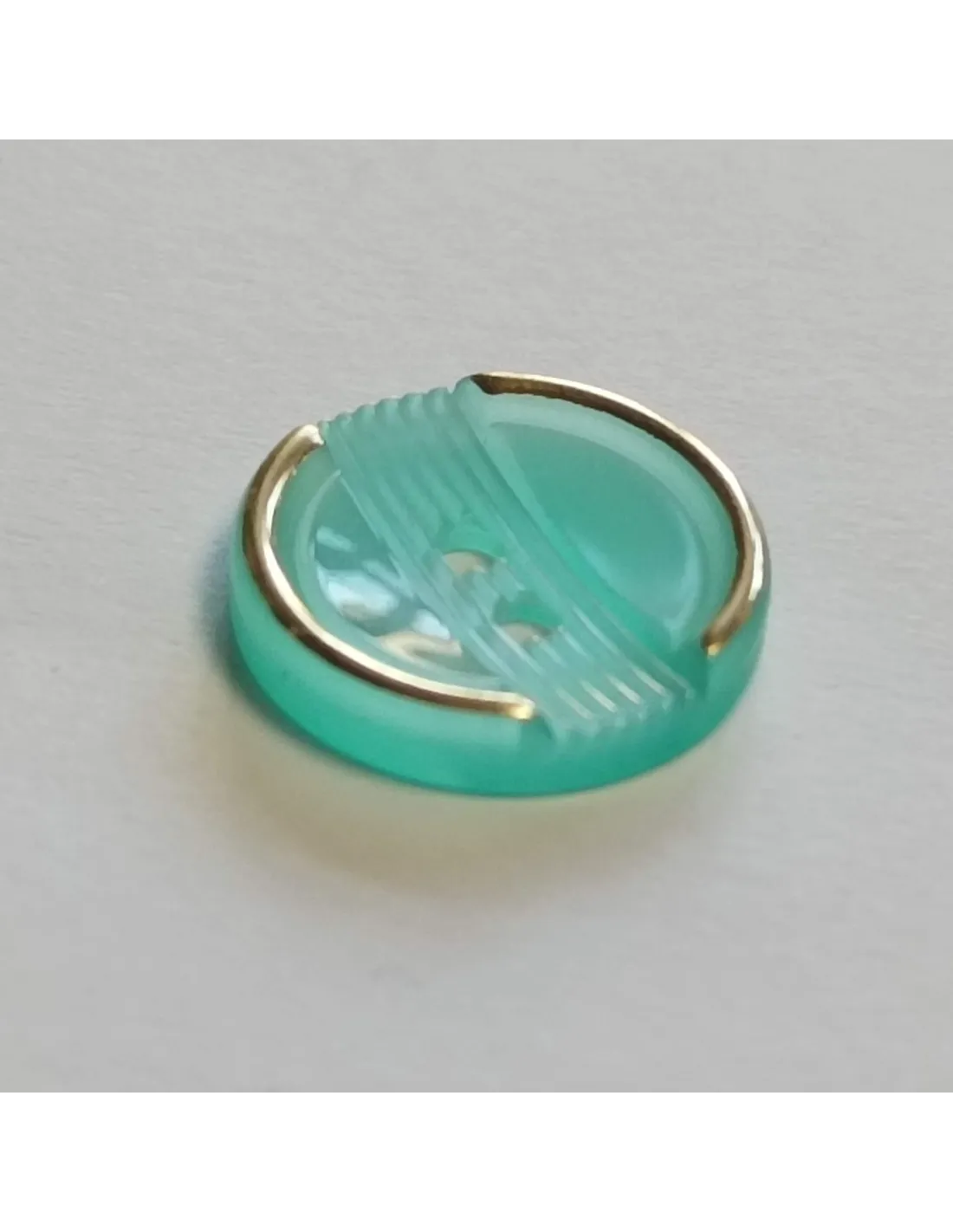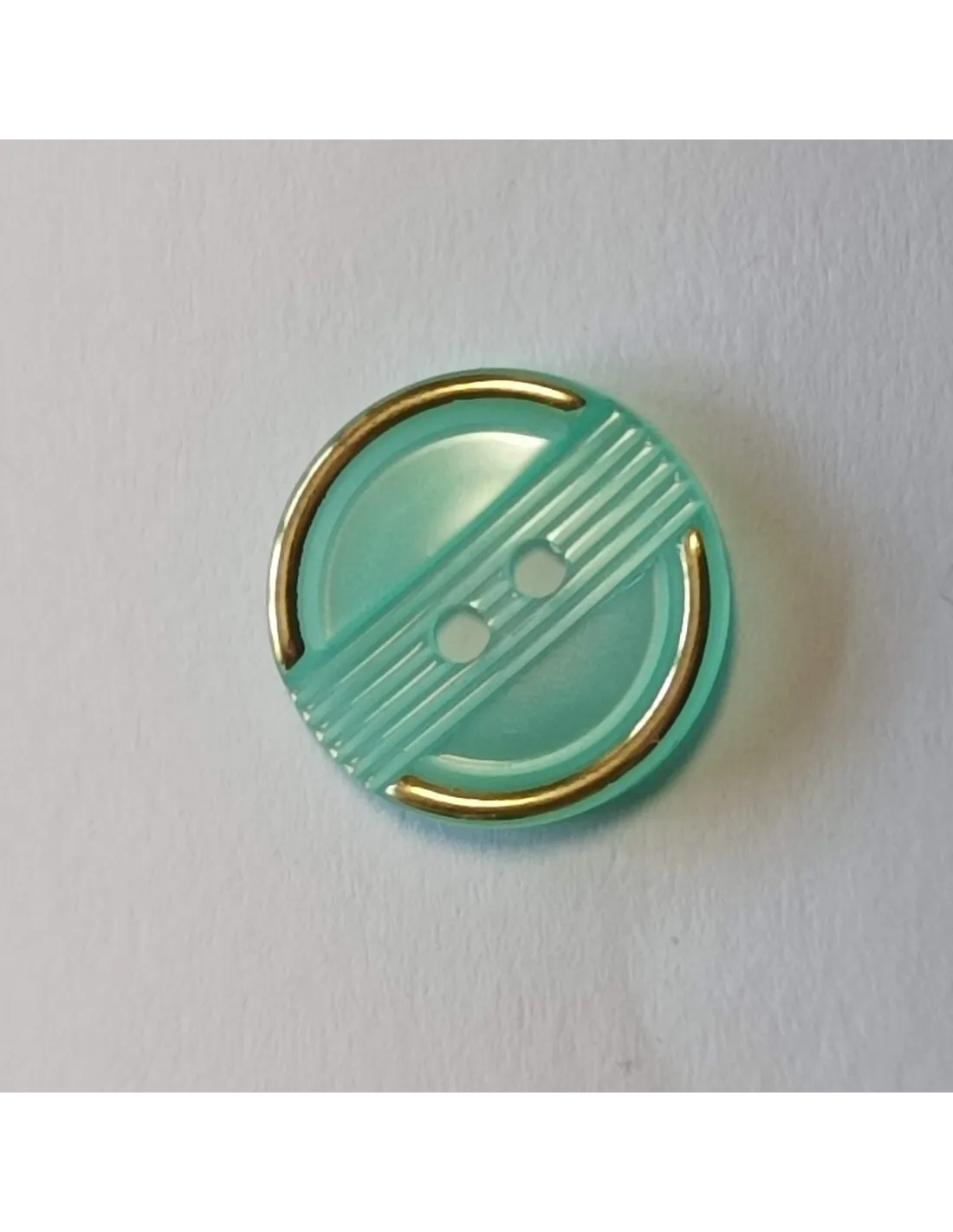 Bouton polyester, 2 trous,14mm, rond, vert jade