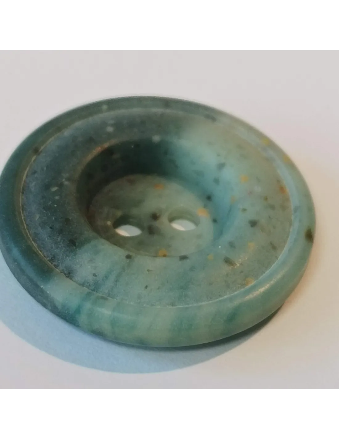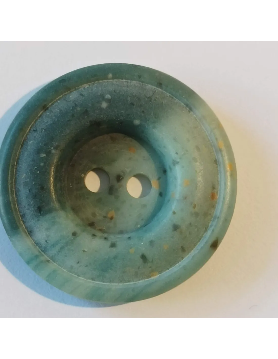 Bouton polyester 2 trous, 27mm, rond, gris/vert/bleu